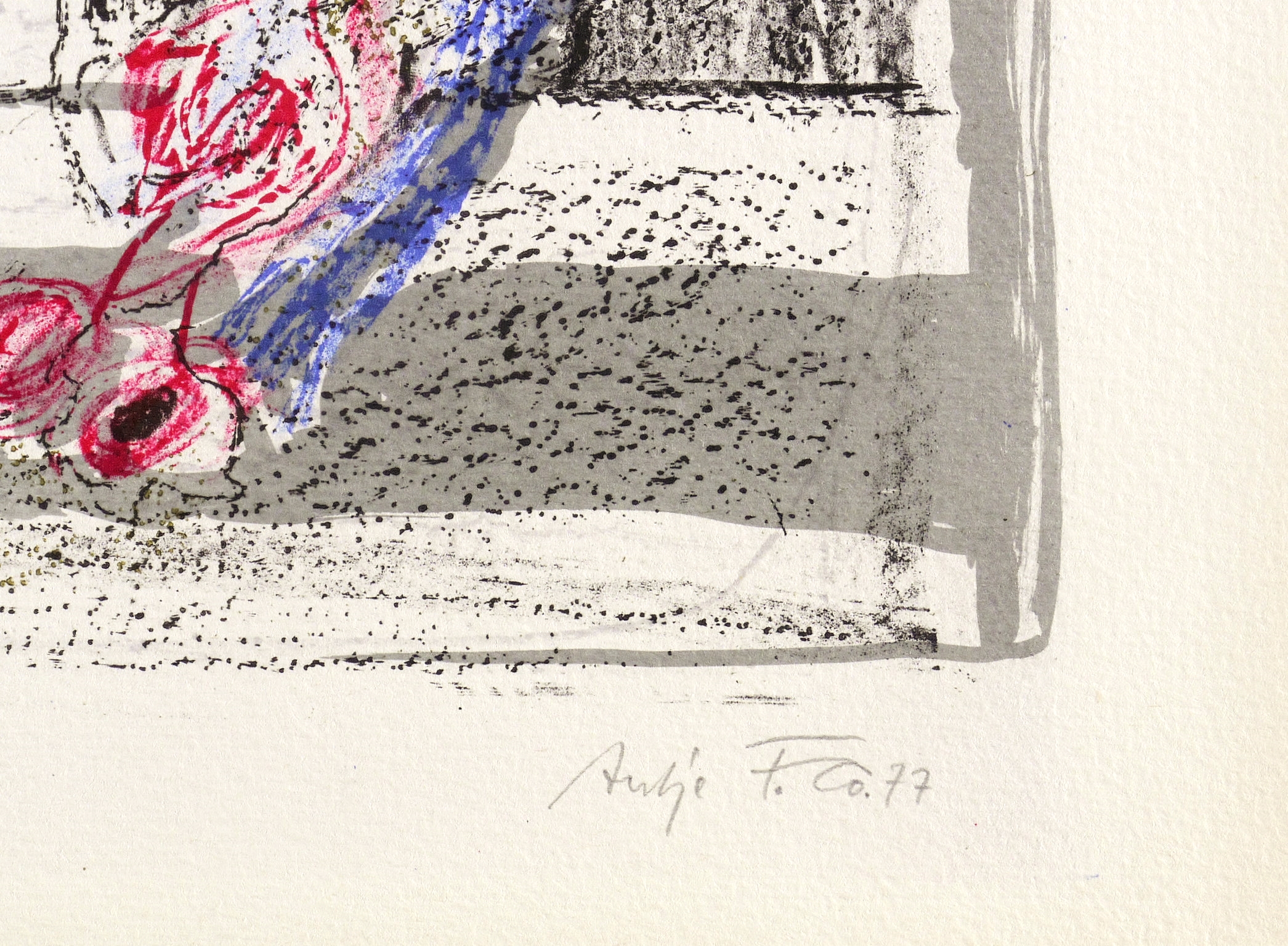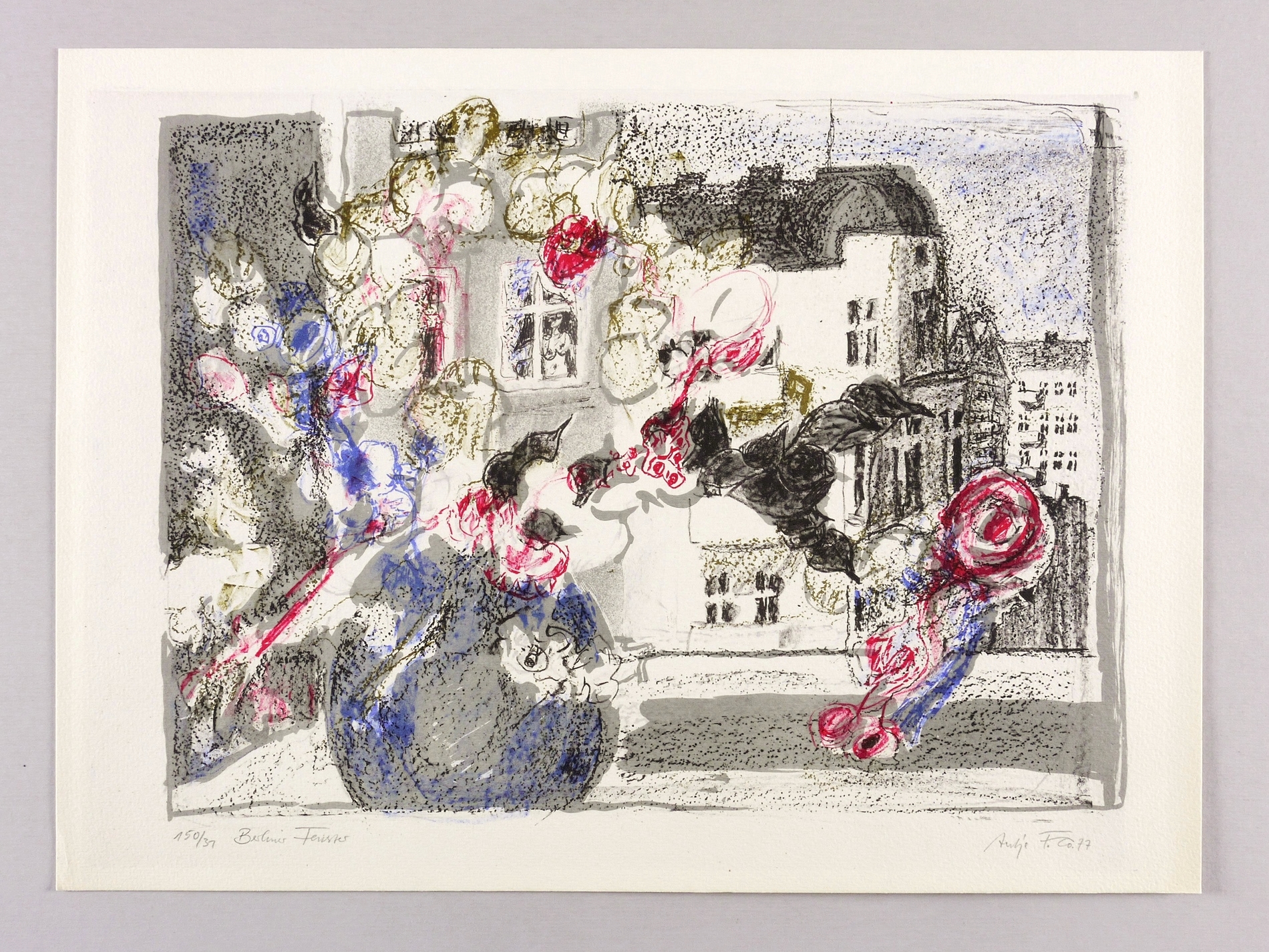 Rechts unten in Bleistift signiert und datiert: ″Antje F.-Co. 77″. Links Auflagenbezeichnung und Titel: ″150/31 // Berliner Fenster″. – Sehr guter Zustand.