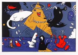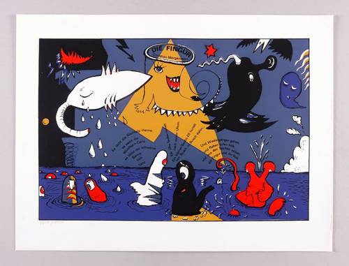 Um 1980. Farbsiebdruck / Farbserigrafie, in 5 Farben, auf weißem Velin. – Originale Künstlergrafik, von Gabine Wenzel. – Auflage Exemplar Nr. 68/150. – 31,8 x 47,1 cm (Darstellung / Druckbild), 42 x 55 cm (Blatt).