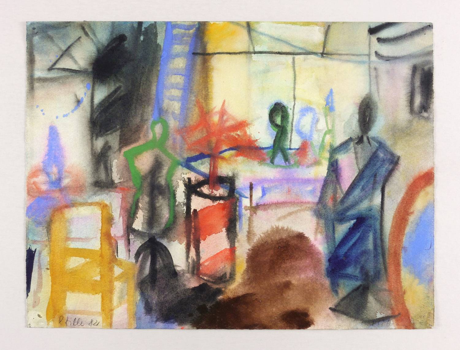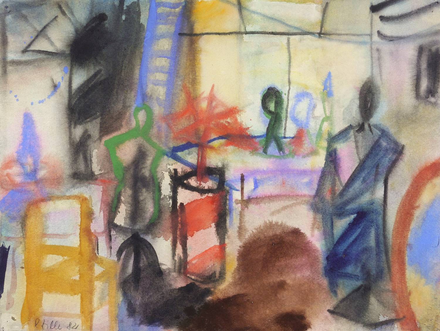 1982. Mischtechnik / Aquarell & Tusche, über Bleistift, auf festem hellchamois Fabriano. – Originale Künstlergrafik, von Rainer Zille. – Unikat. – 32,2 x 42,7 cm (Darstellung / Blatt).