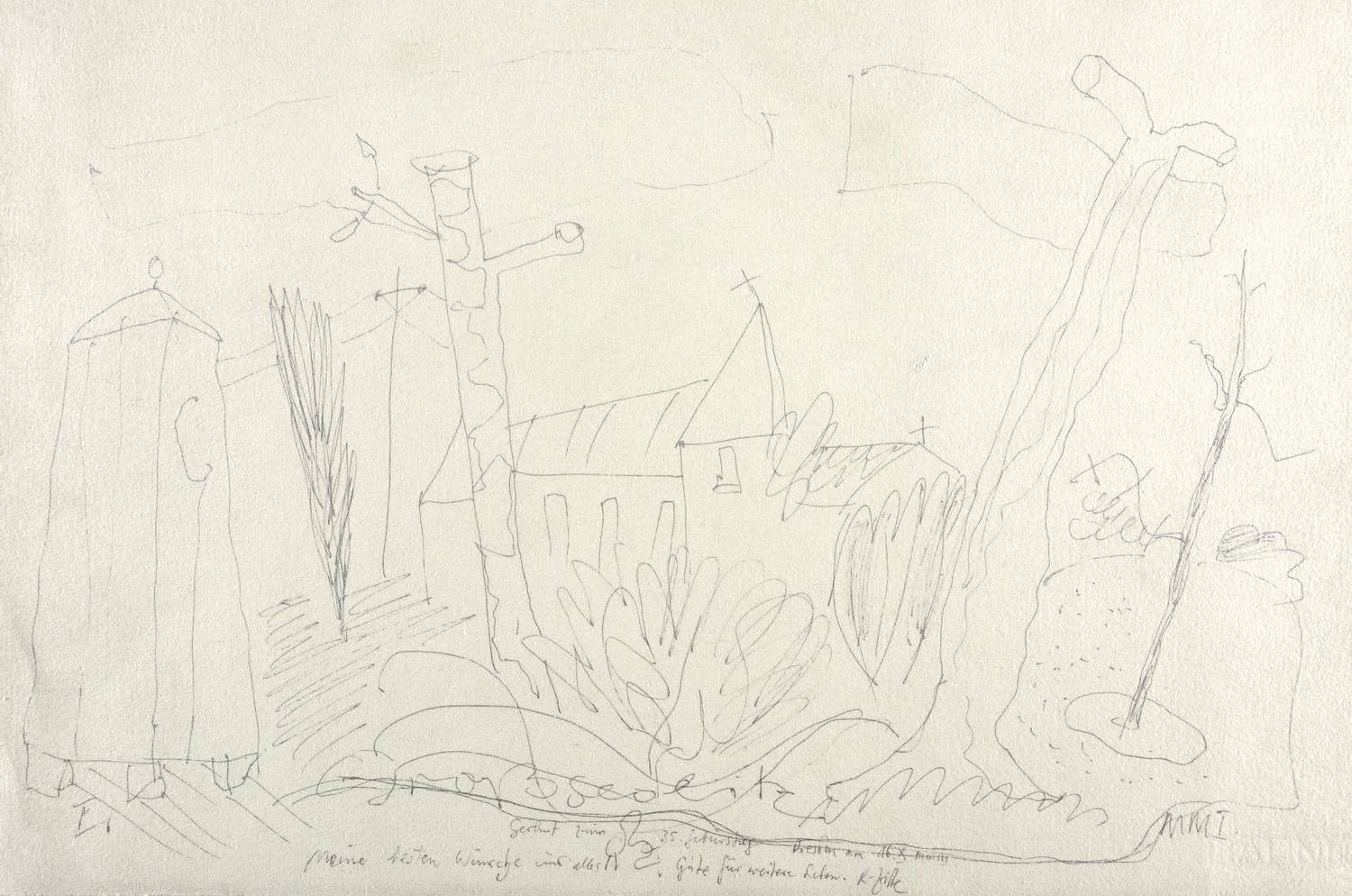 Verso in Silberstift bezeichnet, signiert und datiert: ″Silberstift auf Hahnem. Bütten / R. Zille / Großsedlitz / XXI″. Am unteren Rand der Darstellung Künstlersignet, Widmung und Jahr. – Ohne Mängel. Sehr guter Zustand.