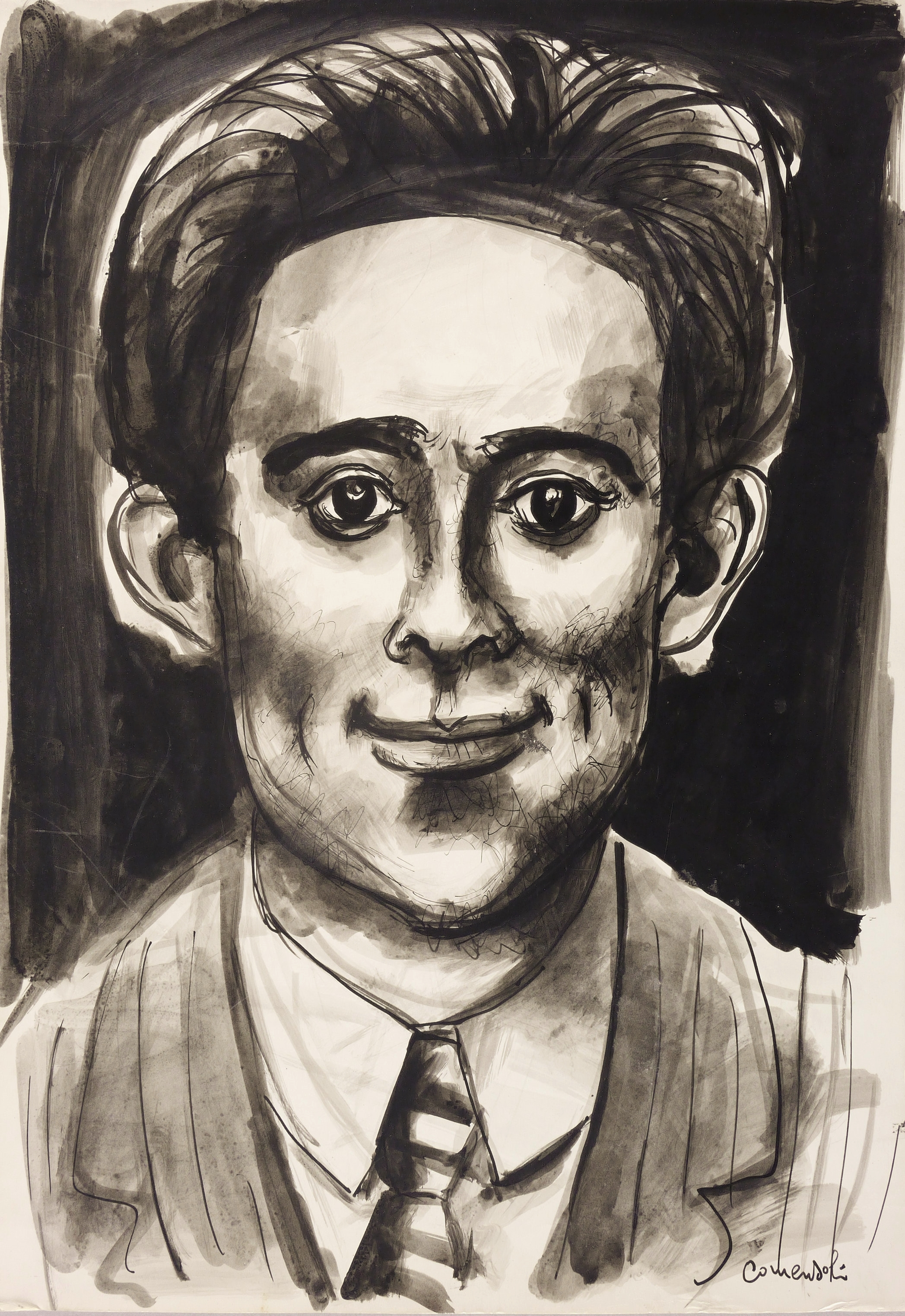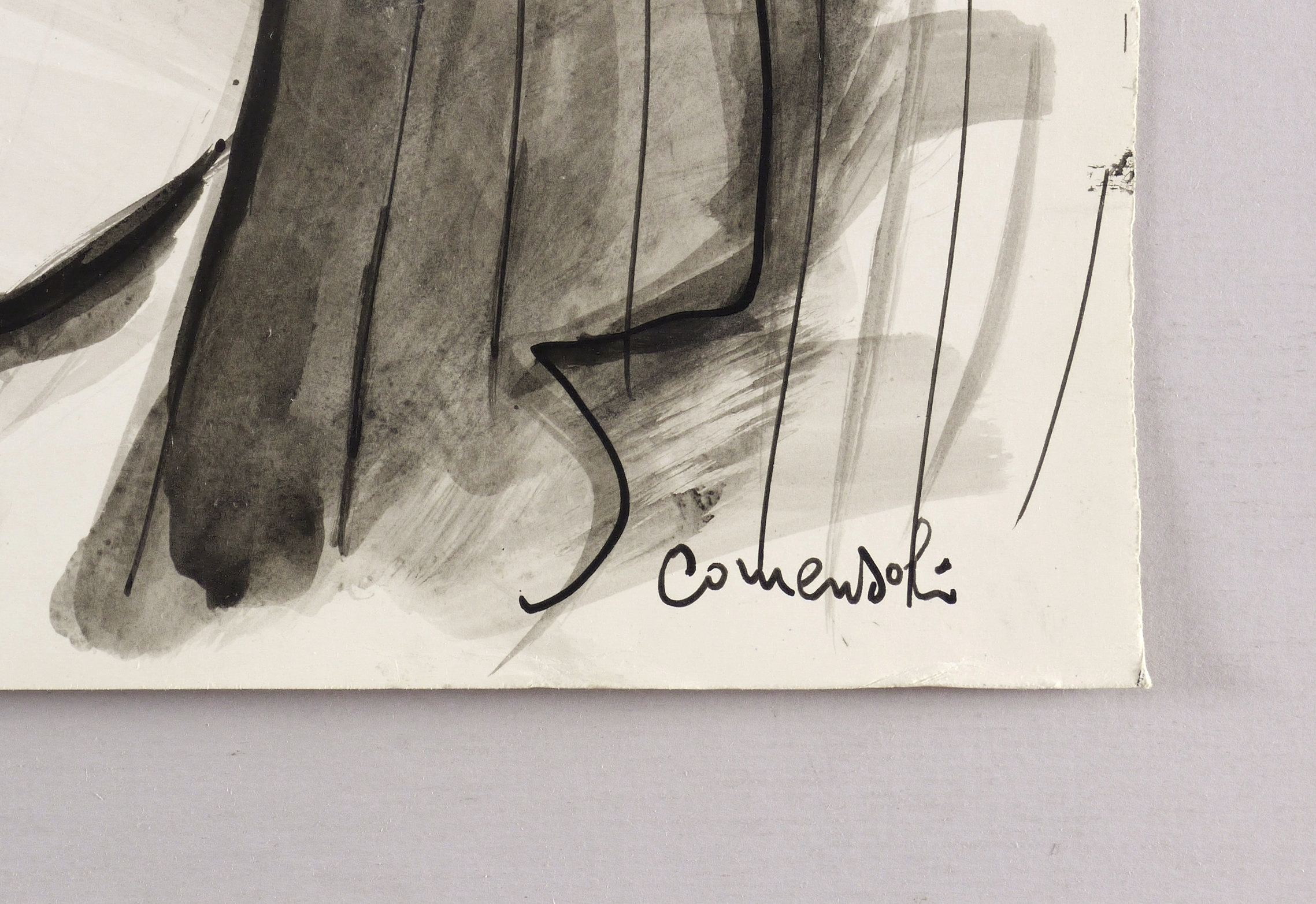 Um 1960. Zeichnung / Feder & Pinsel, in schwarzer Tusche, auf glattem festem Velinkarton. – Originale Künstlergrafik, von Mario Comensoli. – Unikat. – 50,0 x 35,0 cm (Darstellung / Blatt).