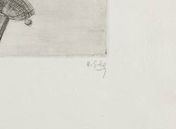 Rechts unten in Bleistift signiert: ″H. Escher″. Links Auflagenbezeichnung: ″1/30″. Dazu Titel: ″Sacco di Roma II: / Landsknecht vor den Toten″. In der Platte links unten datiert: ″9.1965″. – Provenienz: Sammlung Erhard Frommhold, Dresden. Frommhold war Cheflektor und Verlagsleiter des Verlag der Kunst in Dresden. – Sehr guter Zustand.