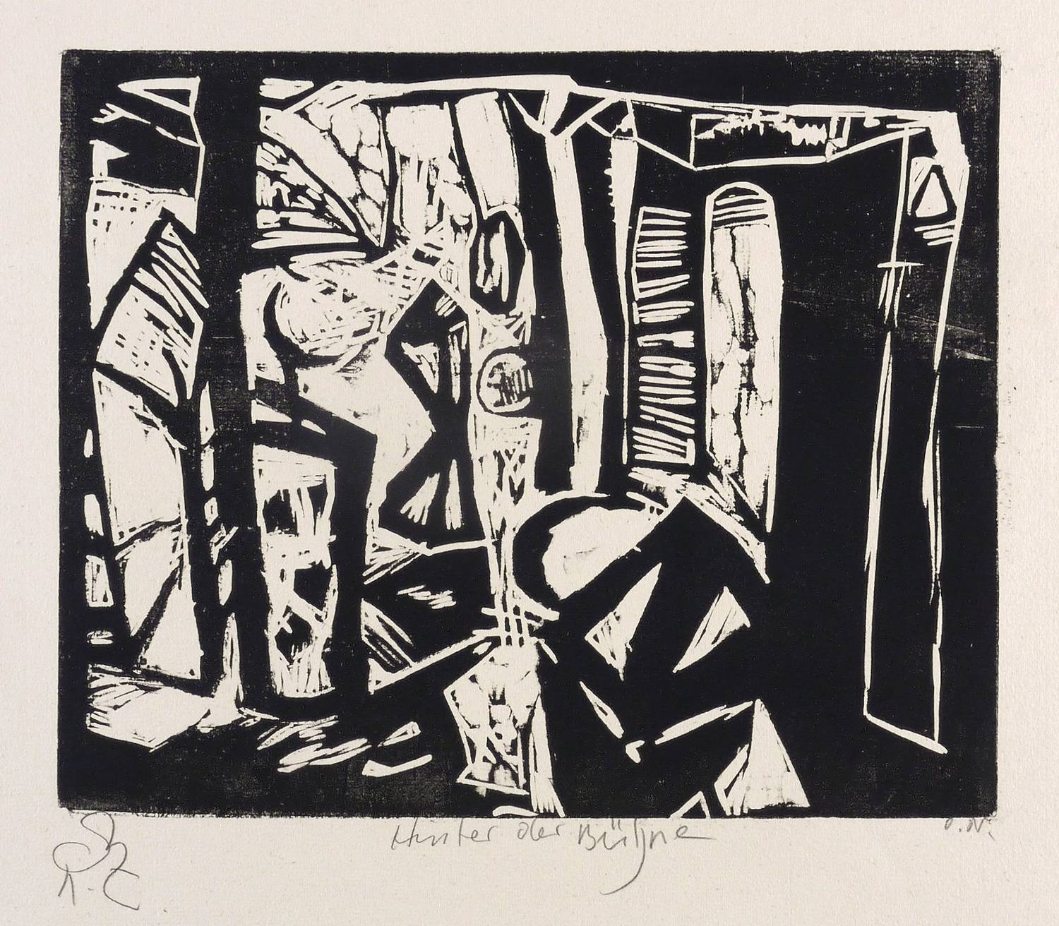 Links unten in Bleistift mit Künstlersignet signiert: ″RZ″. Mittig Titel: ″Hinter der Bühne″. – Provenienz: Sammlung Gerlint und Gerd Söder, Dresden. – Sehr guter Zustand.
