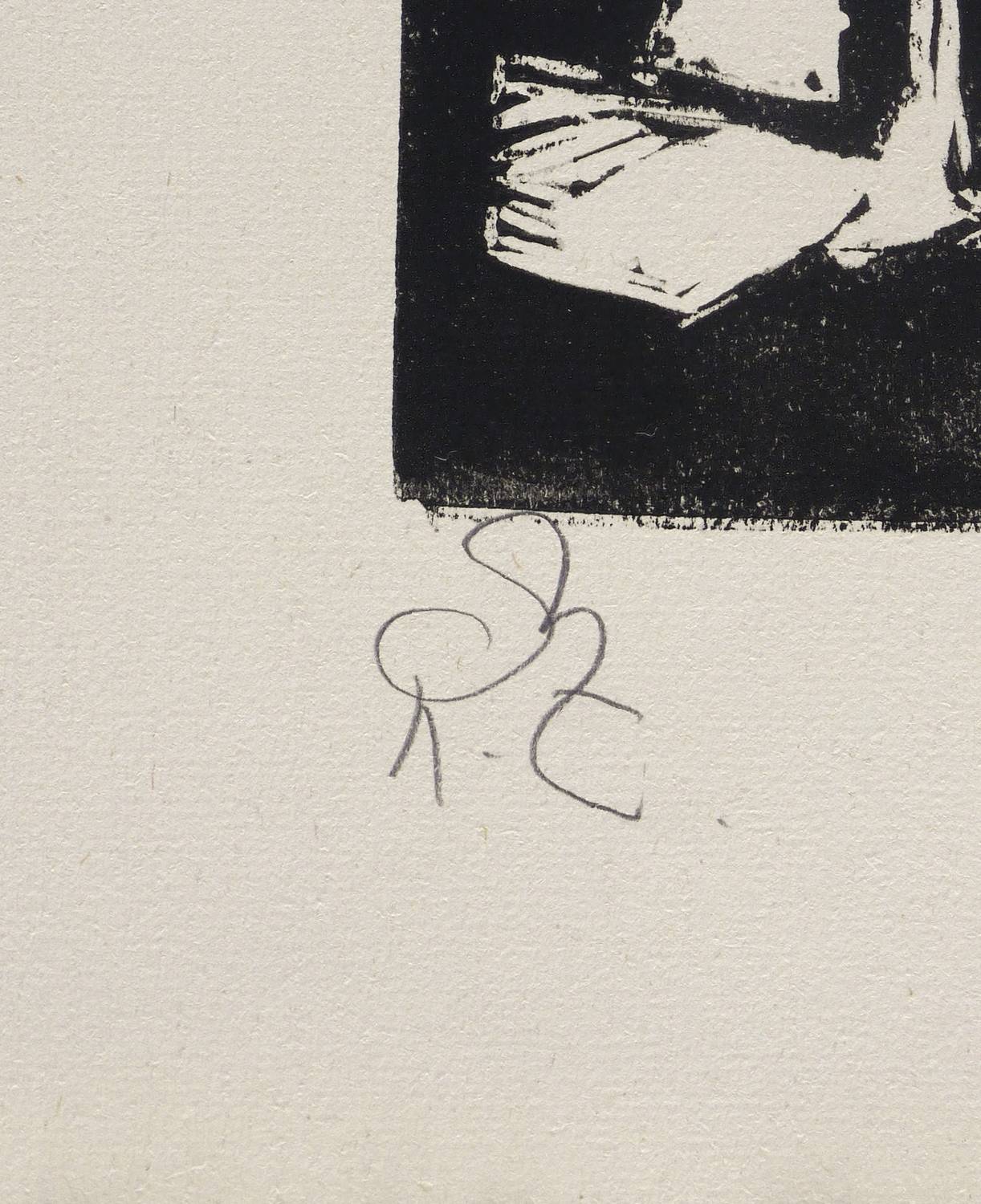 1980-1990. Holzschnitt, partiell geschabt, in Schwarz, auf rauem gelb getöntem Hahnemühle. – Originale Künstlergrafik, von Rainer Zille. – 24,0 x 29,5 cm (Darstellung / Druckstock), 40 x 53 cm (Blatt).