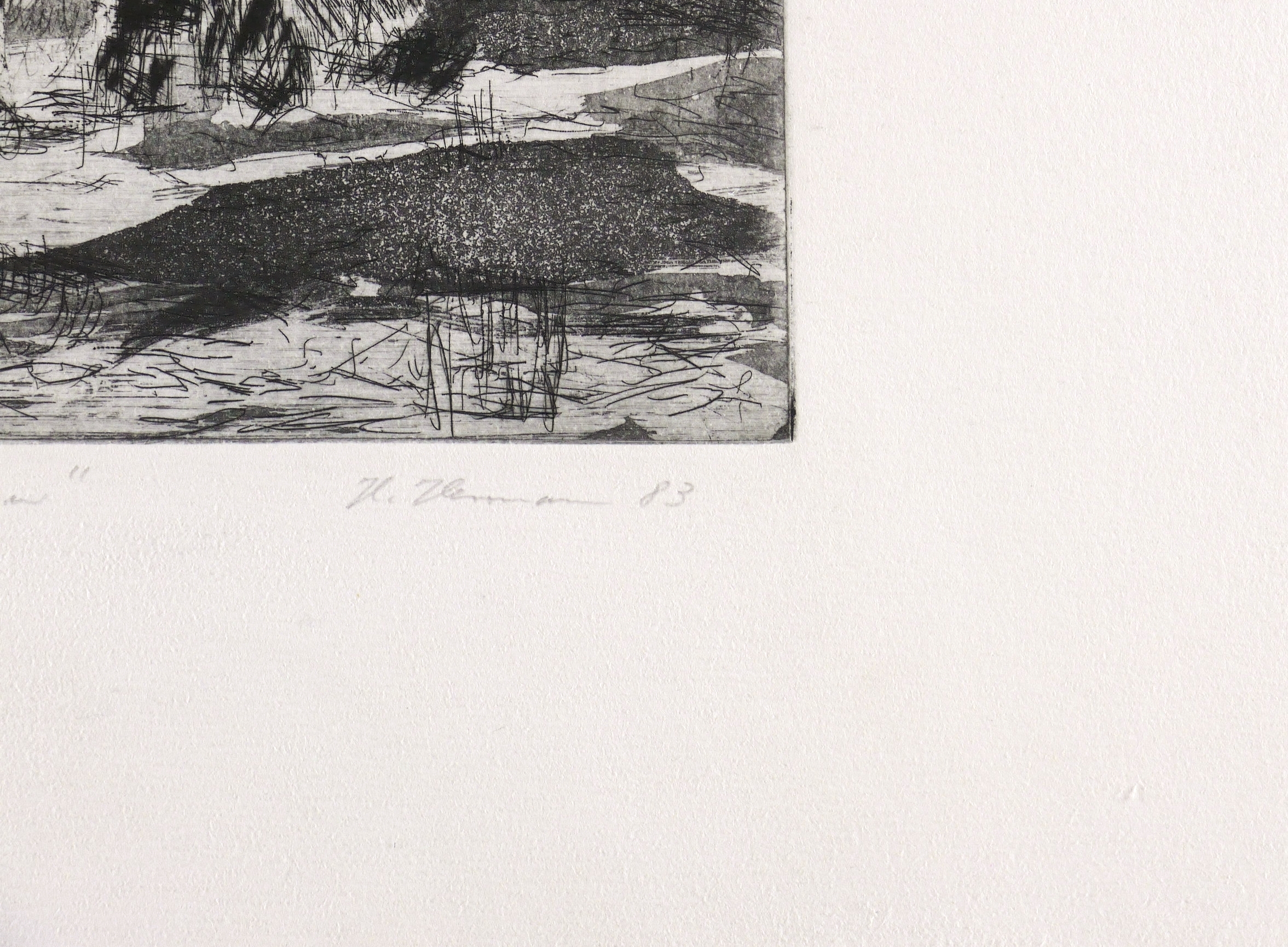 Rechts unten in Bleistift signiert und datiert: ″H. Herrmann 83″. Links eigenhändige Auflagenbezeichnung: ″11/10″. Mittig Titel: ″Landschaft mit Figur″. – Sehr guter Zustand.