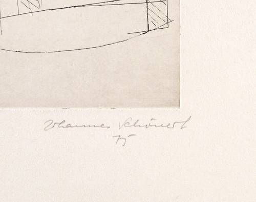 Rechts unten in Bleistift signiert und datiert: ″Johannes Schönert 75″. Links Auflagenbezeichnung: ″15/25″. – Tadellos. Sehr guter Zustand.