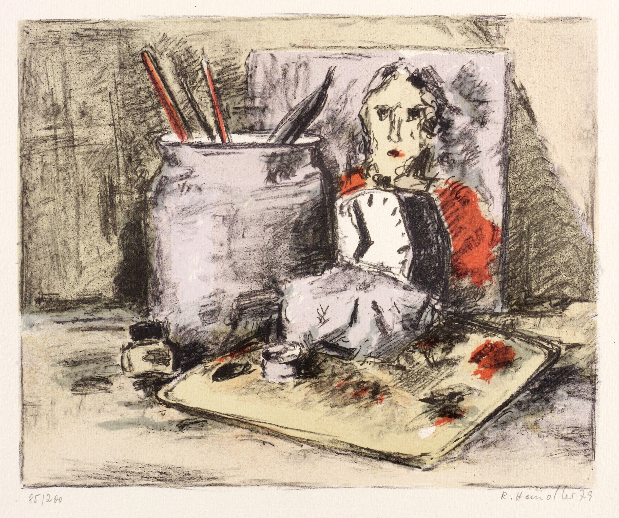 1979. Farboffsetlithografie / Kreide- & Pinsellithografie, in 6 Farben, auf hellem Maschinenkarton. – Originale Künstlergrafik, von Rolf Händler. – Auflage Exemplar Nr. 85/200. – 22,2 x 27,3 cm (Darstellung / Druckbild), 37 x 35 cm (Blatt).