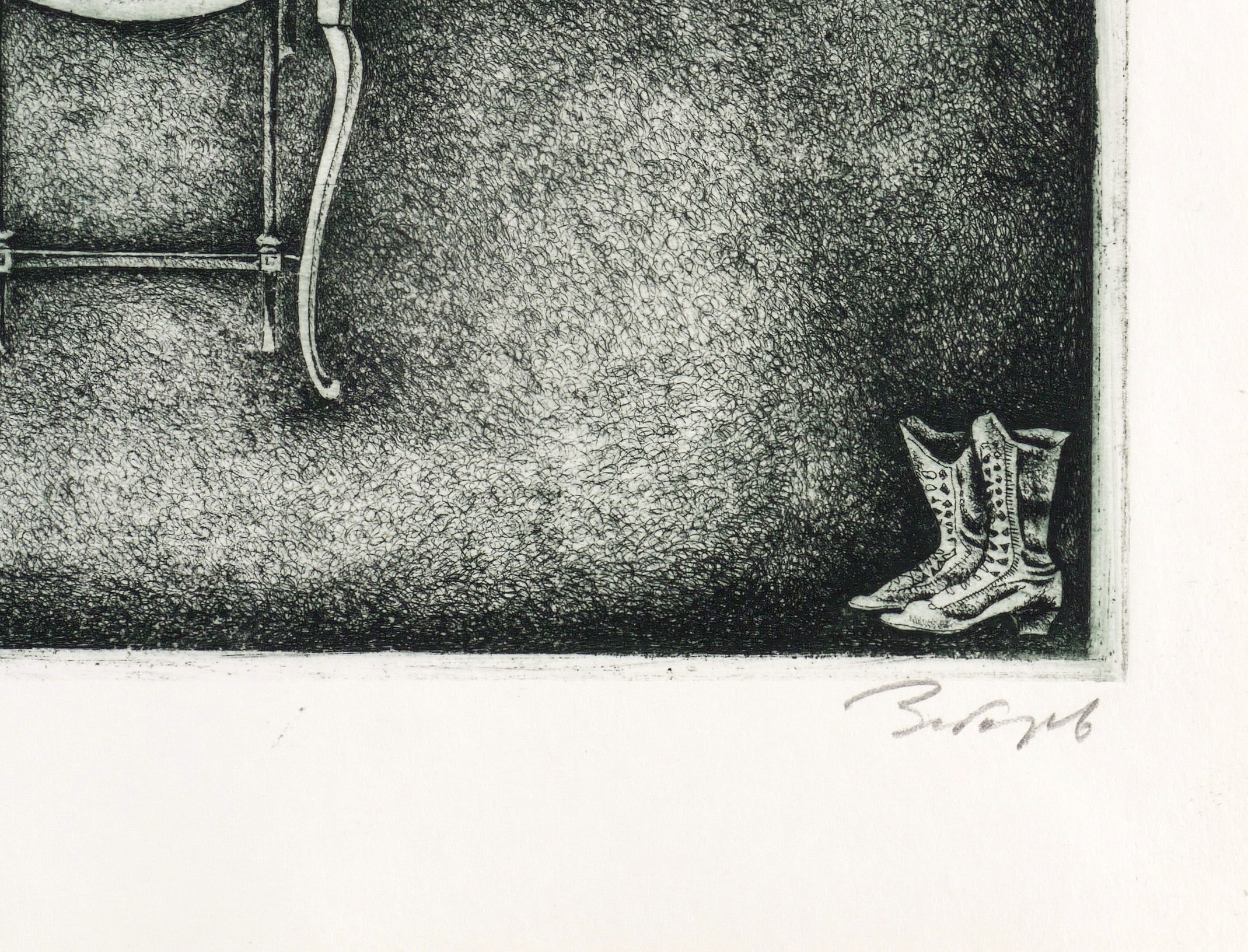 1976. Radierung / Strichätzung & Kaltnadel, in Grünschwarz, auf hartem hellgelbem Velin. – Originale Künstlergrafik, von Boris Zaborov. – Auflage Exemplar Nr. 50/50. – 32,5 x 31,1 cm (Darstellung / Platte), 39 x 36 cm (Blatt).