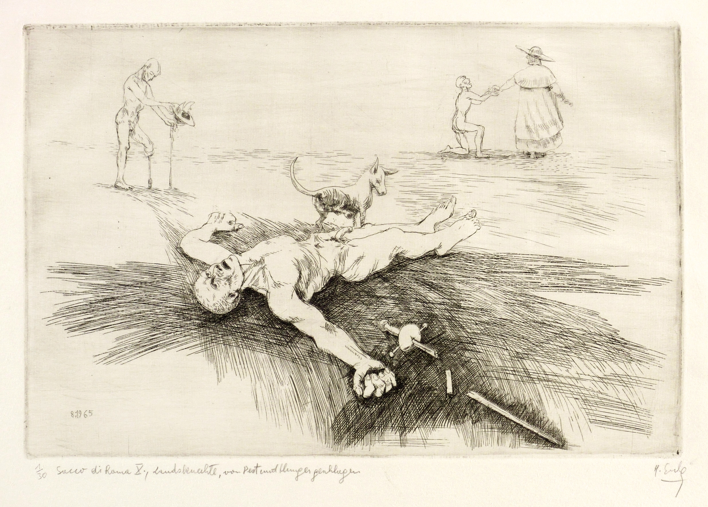 Escher, Hans. – Sacco di Roma. – Blatt X. – „Landsknechte, von Pest und Hunger geschlagen”.