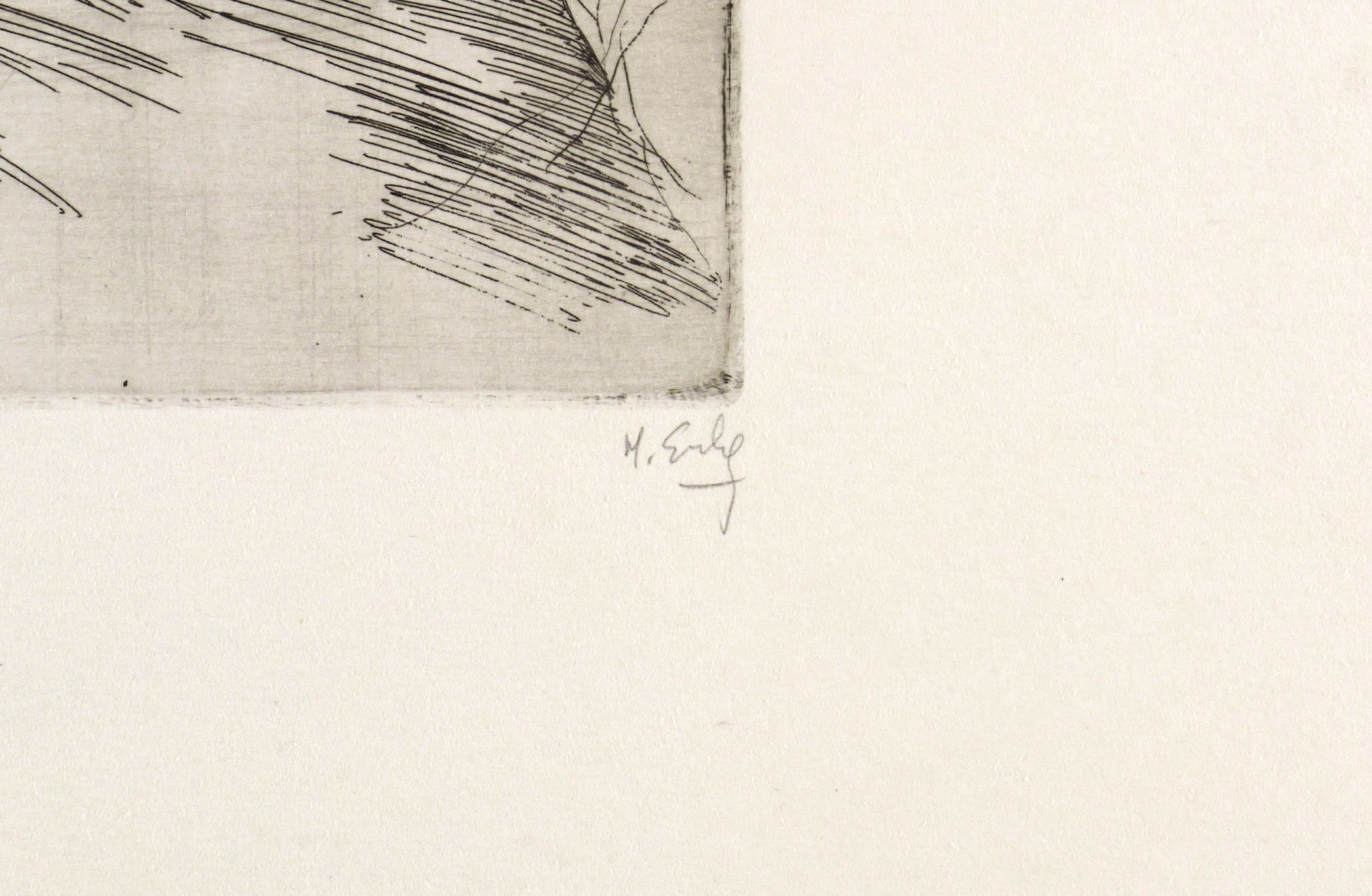 Rechts unten in Bleistift signiert: ″H. Escher″. Links Auflagenbezeichnung: ″3/30″. In der Platte links unten datiert: ″9.1965″. – Provenienz: Sammlung Erhard Frommhold, Dresden. Frommhold war Cheflektor und Verlagsleiter des Verlag der Kunst in Dresden. – Sehr guter Zustand.