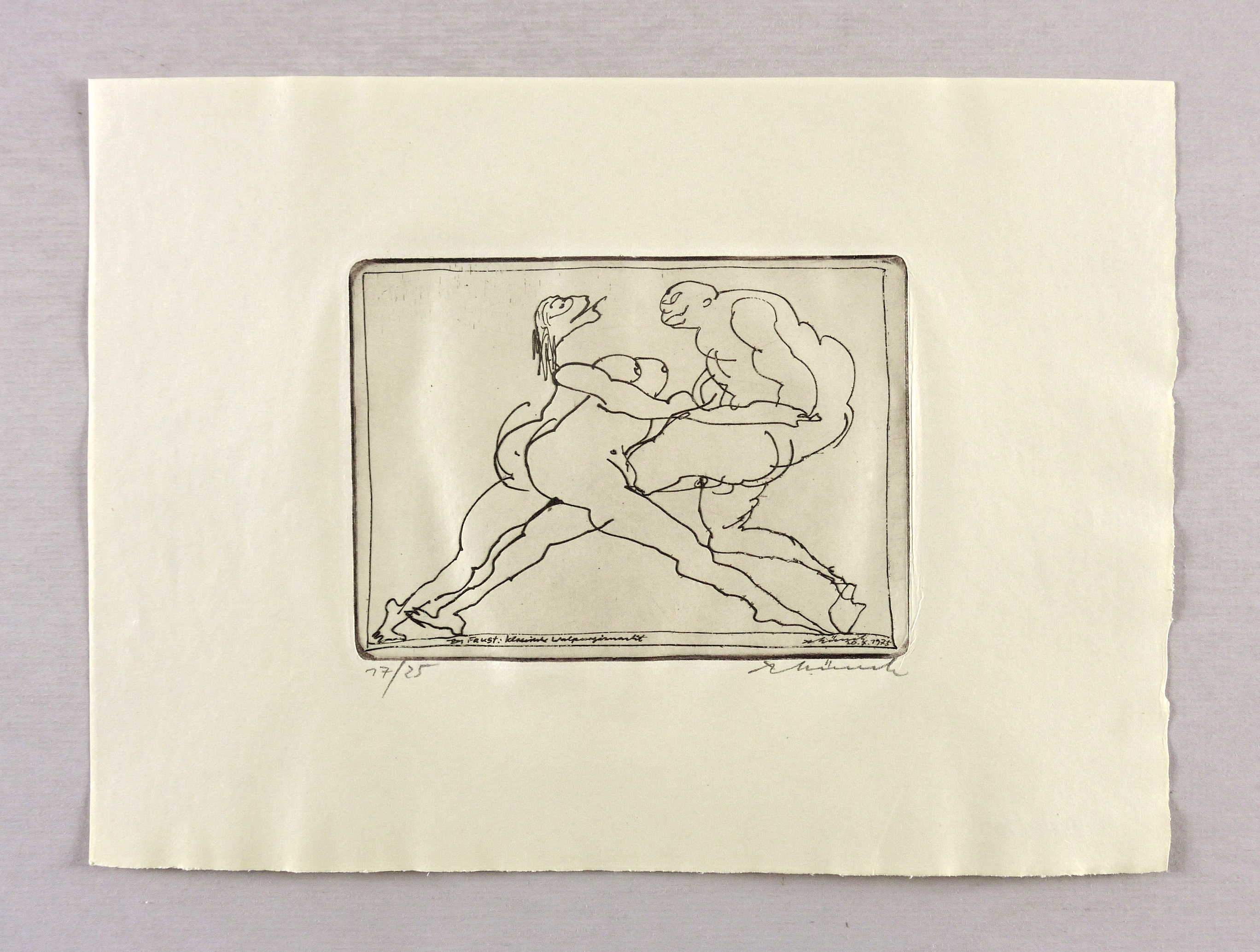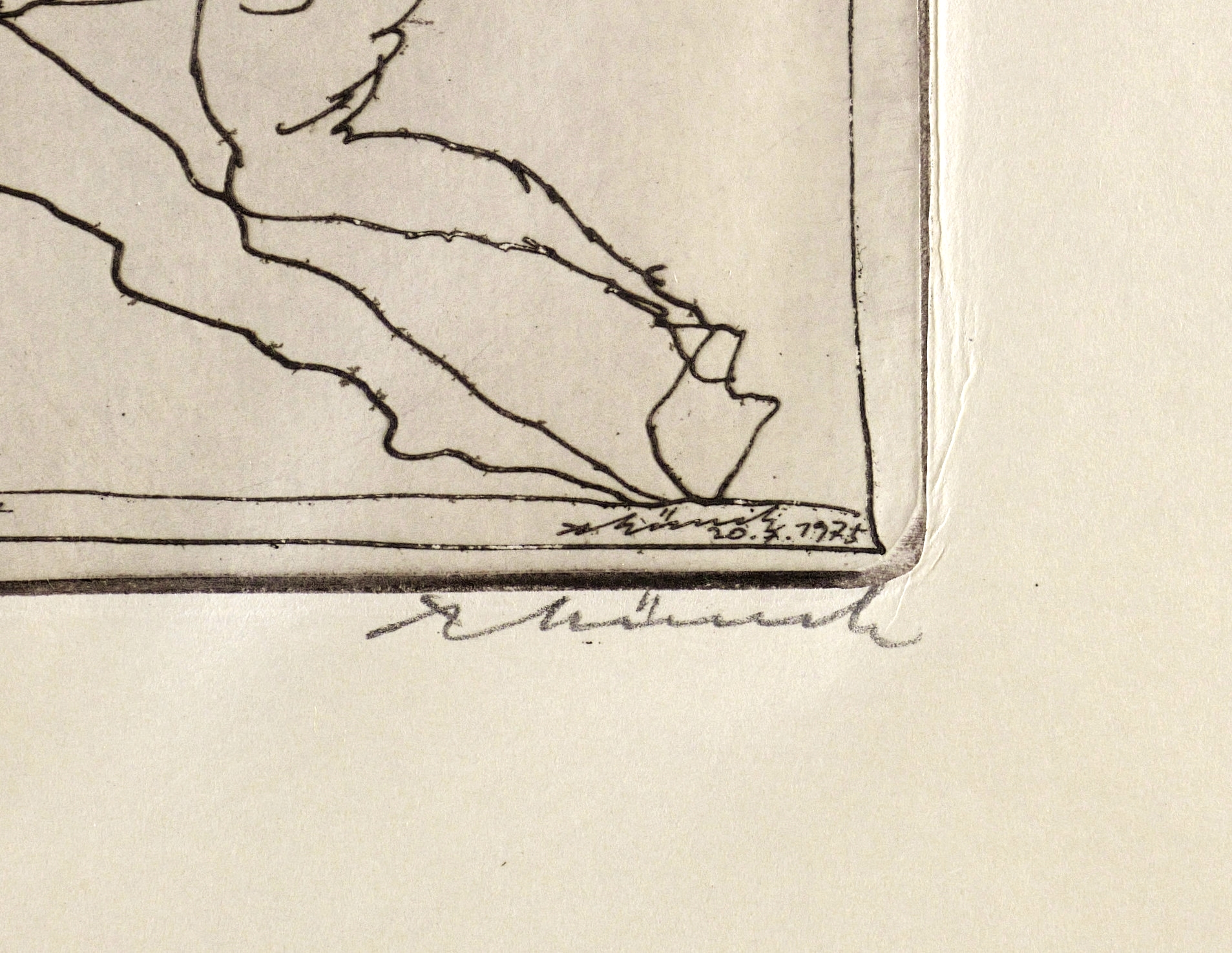 Rechts unten in Bleistift signiert: ″AMünch″. Links Auflagenbezeichnung: ″17/25″. In der Platte rechts unten zusätzlich Signatur und Datum: ″Münch 20.7.1975″. Links Inschrift: ″zu Faust: Klassische Walpurgisnacht″. – Tadellos. Sehr guter Zustand.