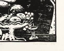 Rechts unten in Bleistift signiert und datiert; ″Thea Kowar 1975″. Links Titel: ″Frau mit Obstschale″. – Sehr guter Zustand.