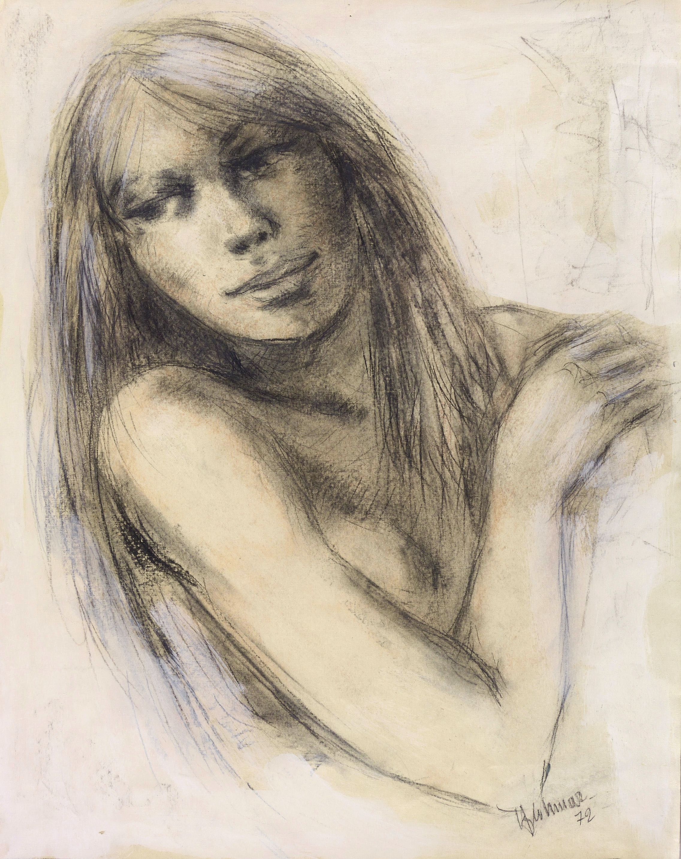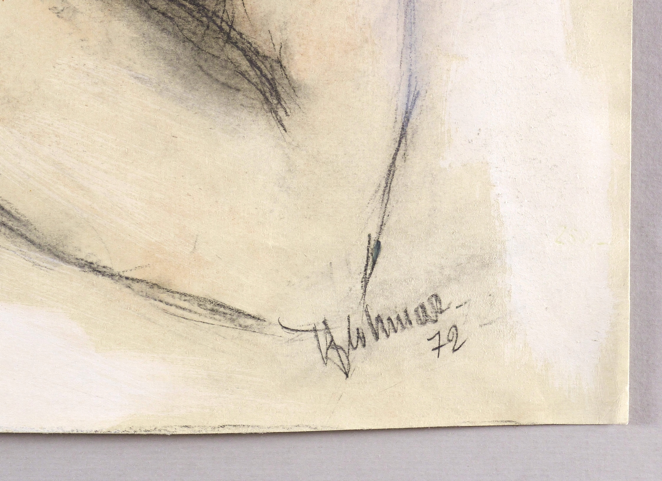 1972. Zeichnung / Kohle, Kreide & Deckweiß, auf helgelbem Velinkarton. – Originale Künstlergrafik, von Heinz Lohmar. – Unikat. – 50,6 x 40,0 cm (Darstellung / Blatt).
