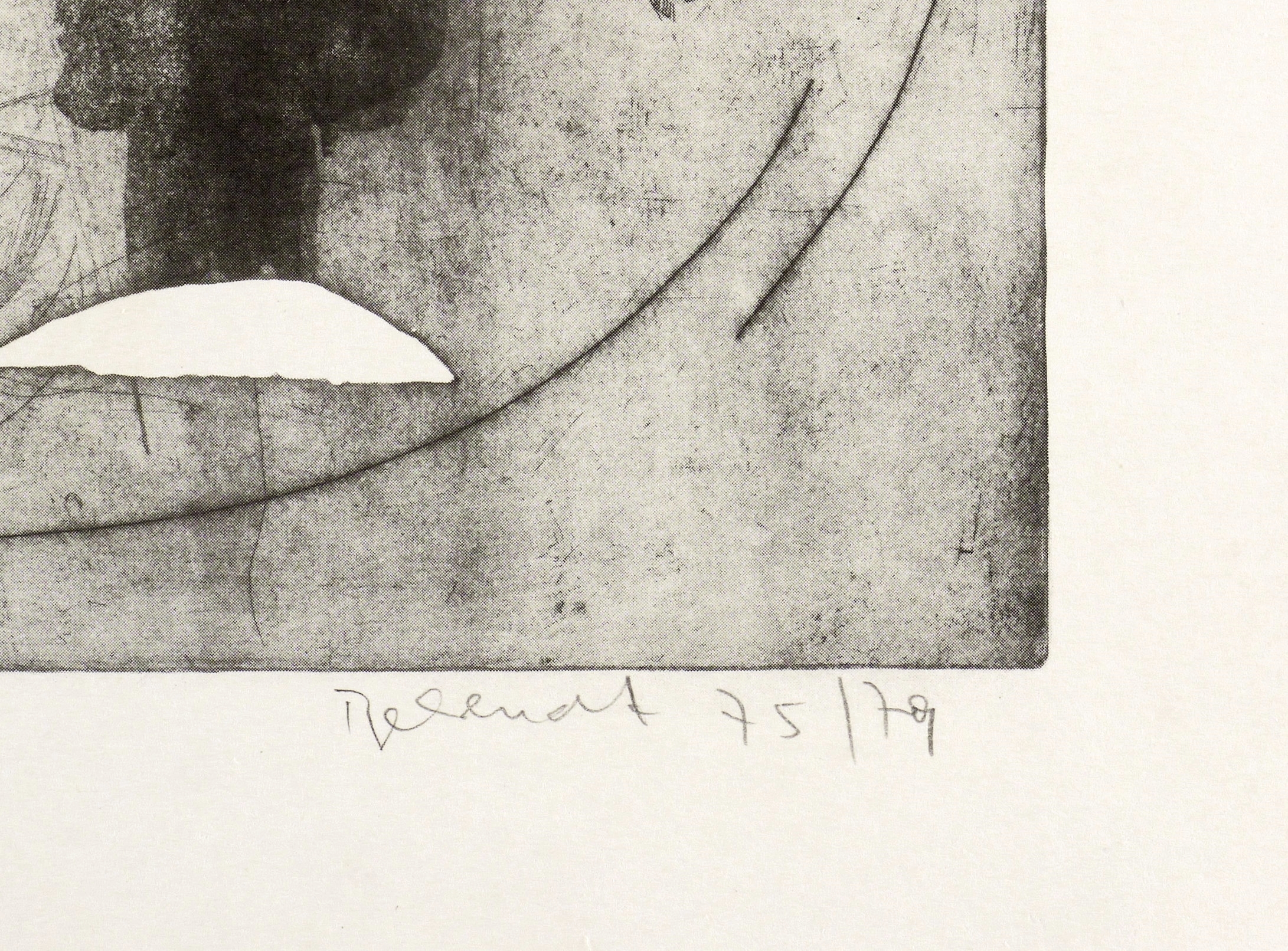1975/1979. Originaloffset / Feder & Pinsel, in Schwarz, auf glattem hellchamois Velin. – Originale Künstlergrafik, von Falko Behrendt. – 25,4 x 29,7 cm (Darstellung / Platte), 34 x 39 cm (Blatt).
