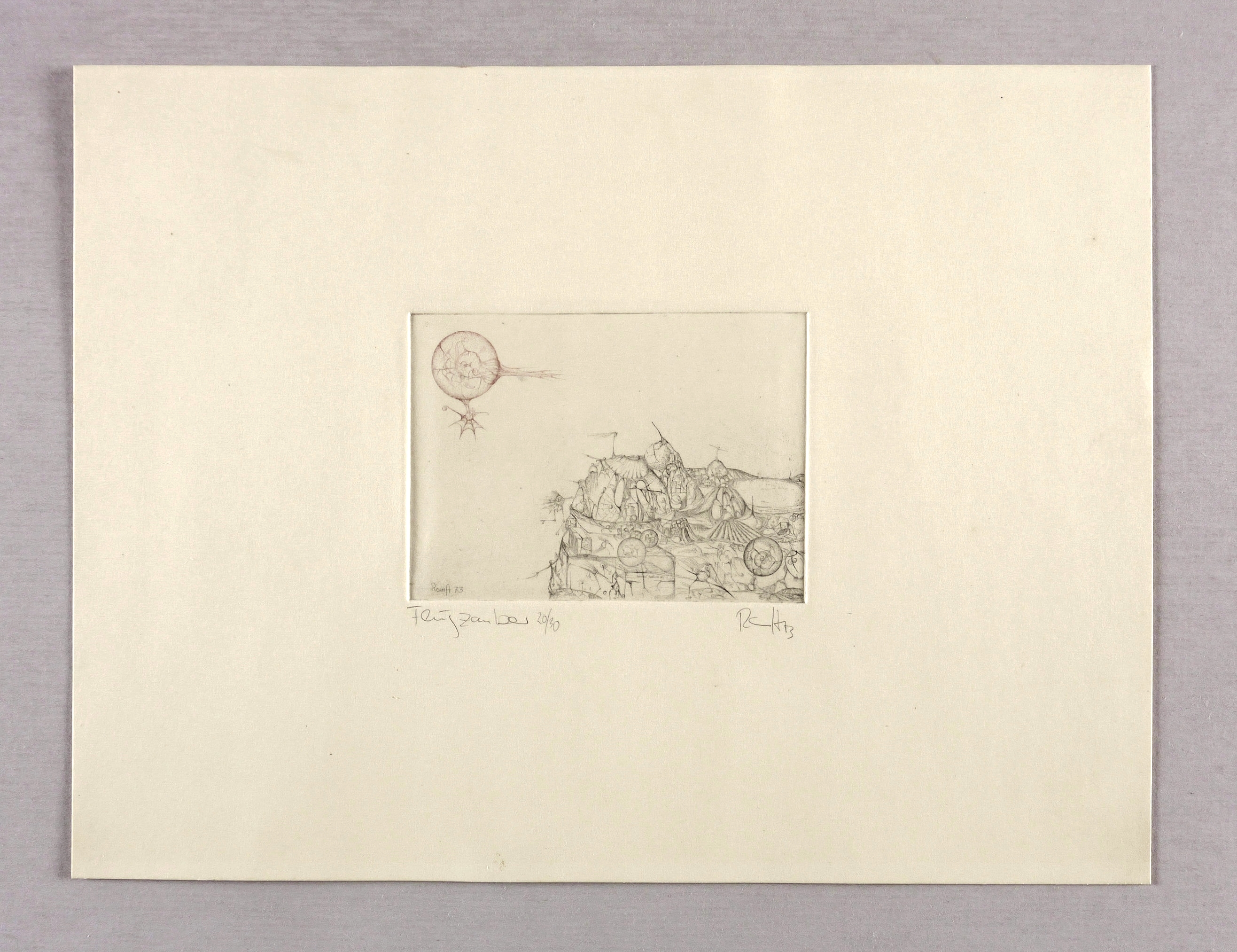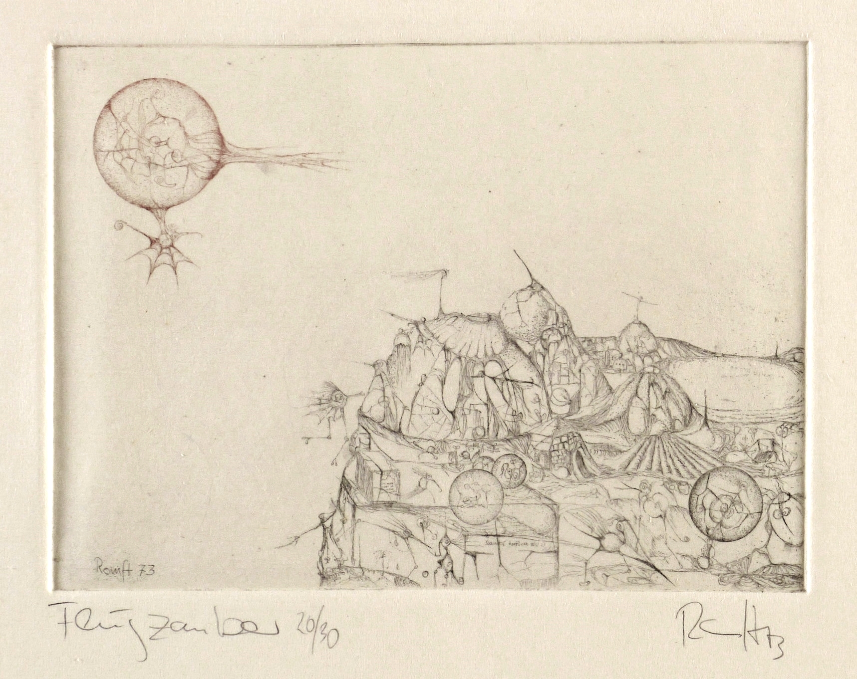 Rechts unten in Bleistift signiert und datiert: ″Ranft 73″. Links Titel: ″Flugzauber″. Daneben Auflagenbezeichnung: ″20/30″. In der Platte links unten Signatur und Jahr: ″Ranft 73″. – Sehr guter Zustand.