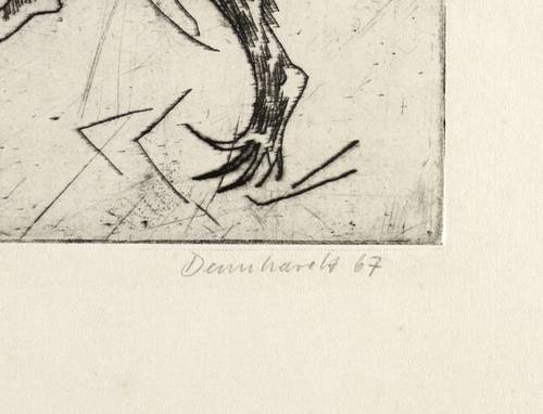 Rechts unten in Bleistift signiert und datiert: ″Dennhardt 67″. Links Titel: ″Strawinski 'Geschichte des Soldaten'″. – Seltenes Frühwerk des Künstlers. – Sehr guter Zustand.