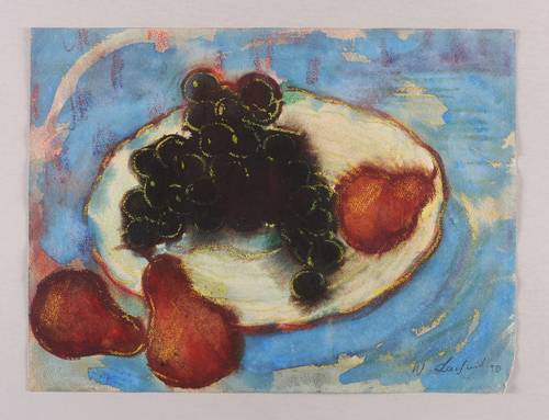 Lachnit, Wilhelm. – „Obstteller auf blauem Grund”.