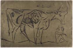 1960. Farbradierung / Aquatinta, in Graubraun & Schwarz, auf feinem hellchamois Bütten. – Originale Künstlergrafik, von Wilhelm Lachnit. – 32,5 x 50,0 cm (Darstellung / Platte), 33,5 x 52,5 cm (Blatt).