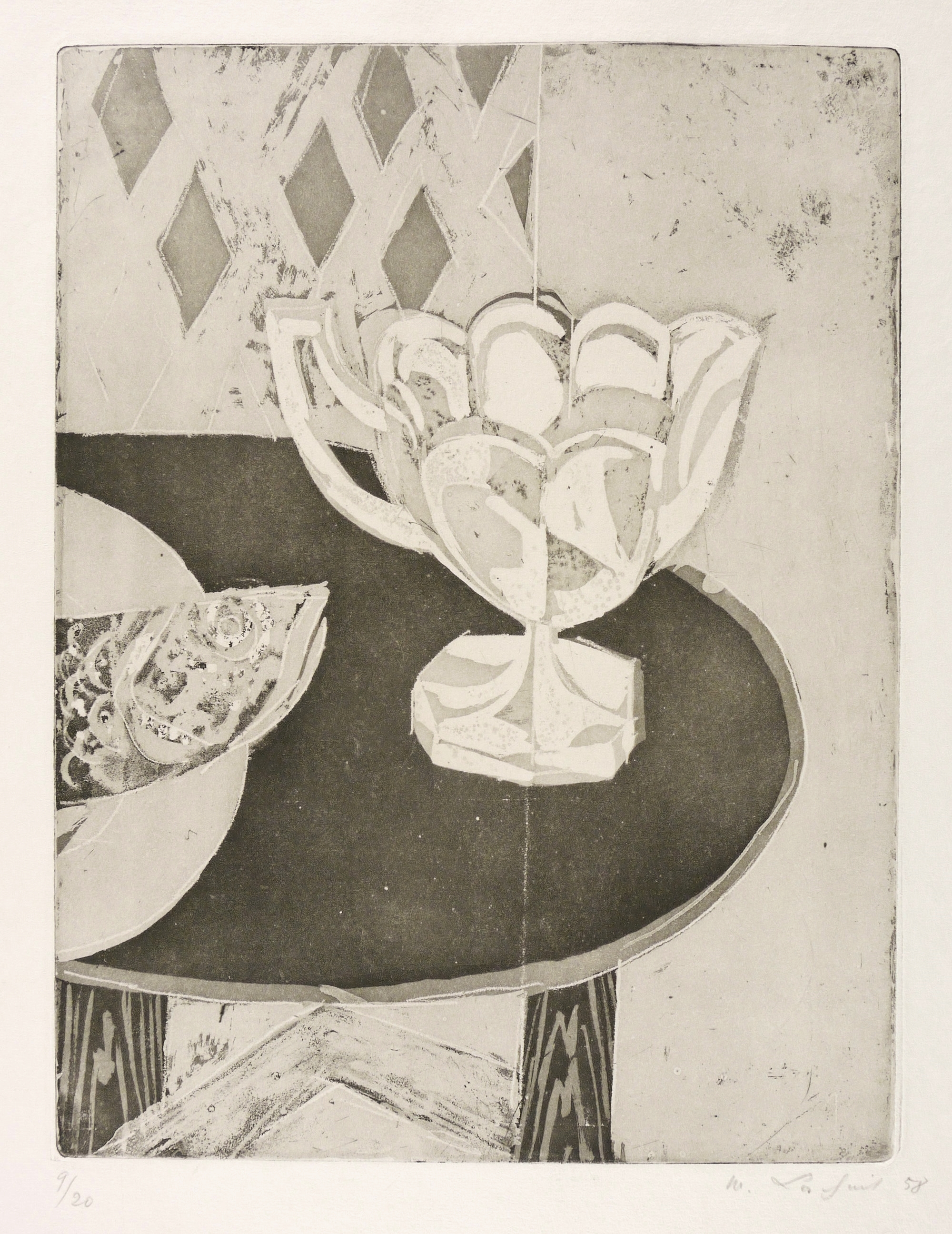 1958. Radierung / Aquatinta, in Schwarz, auf feinem hellchamois Velin. – Originale Künstlergrafik, von Wilhelm Lachnit. – Auflage Exemplar Nr. 9/20. – 32,4 x 24,5 cm (Darstellung / Platte), 40 x 36 cm (Blatt).