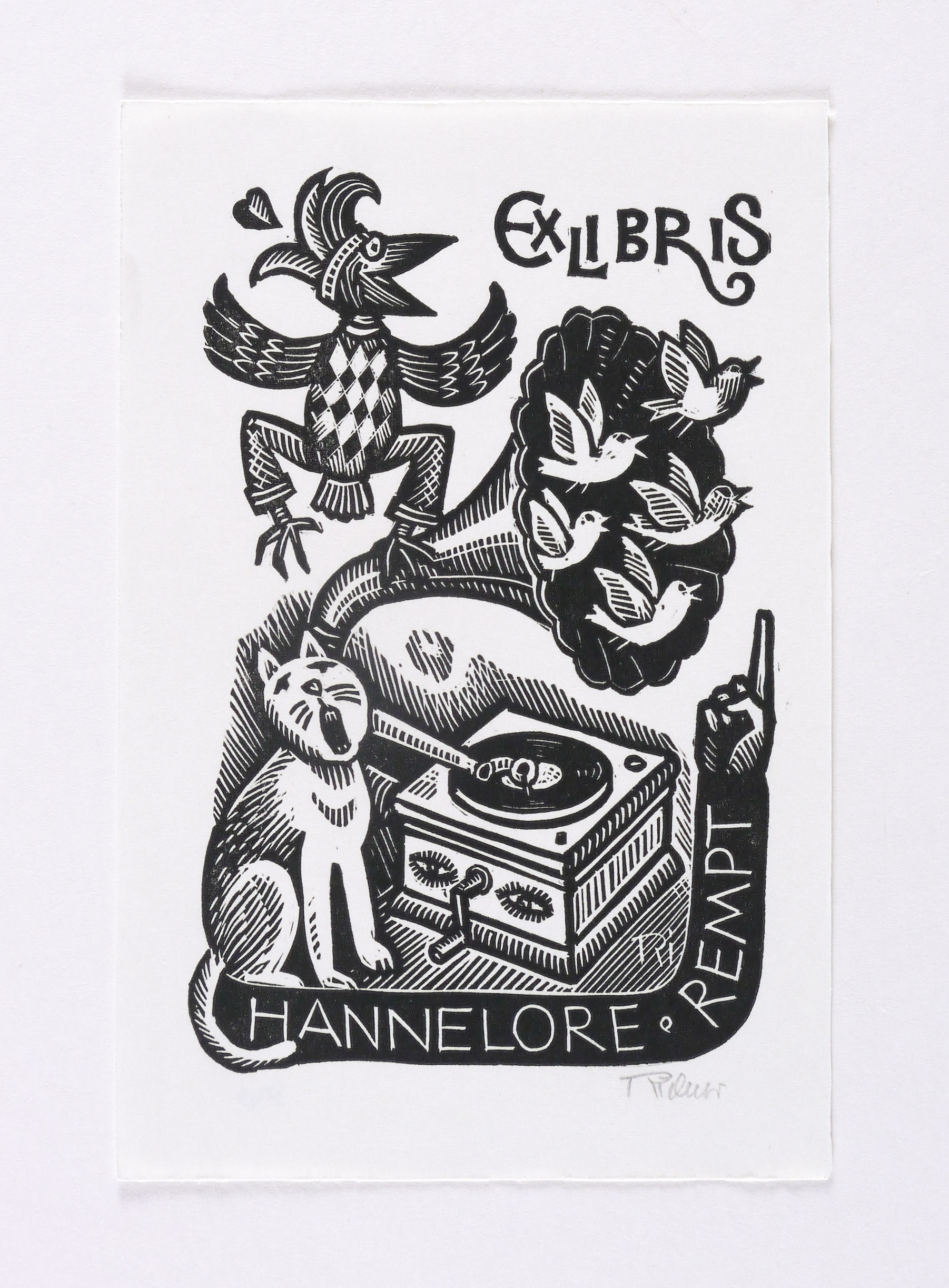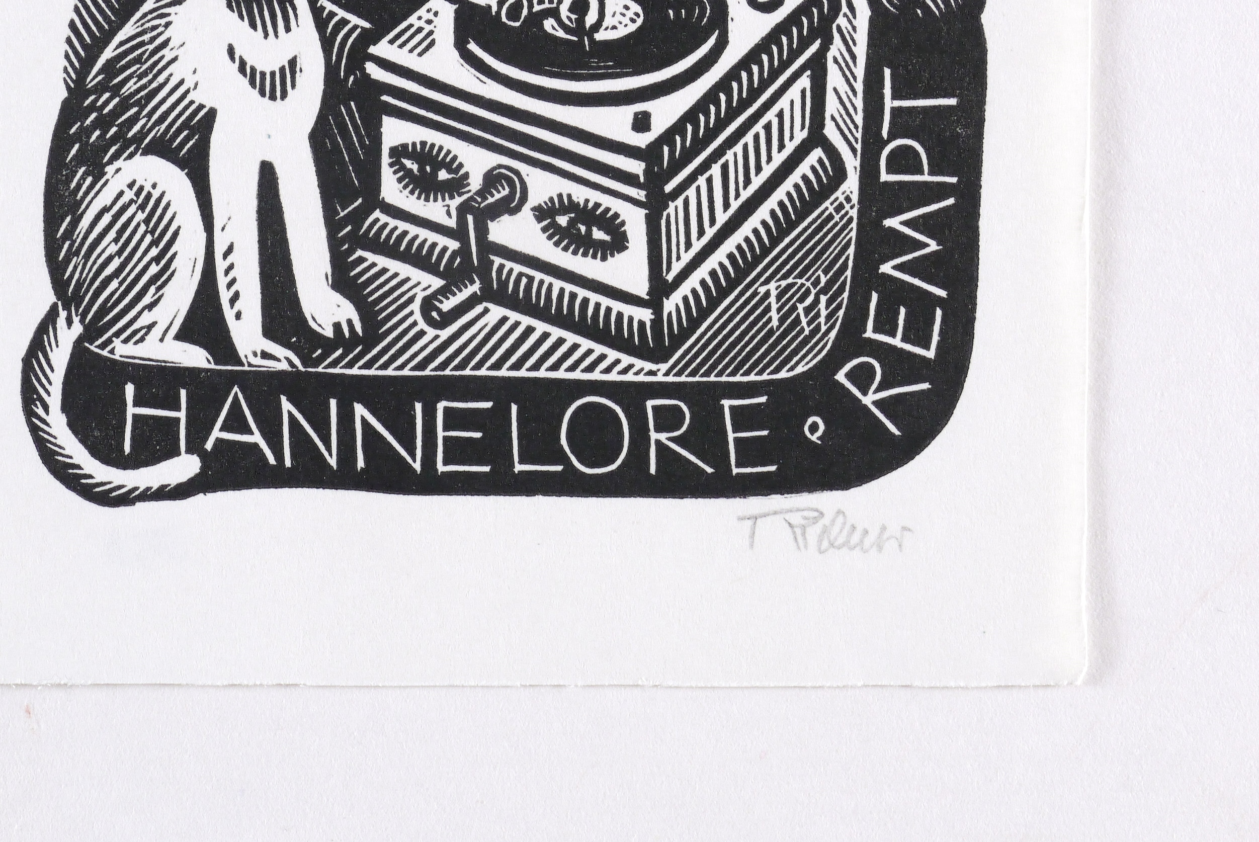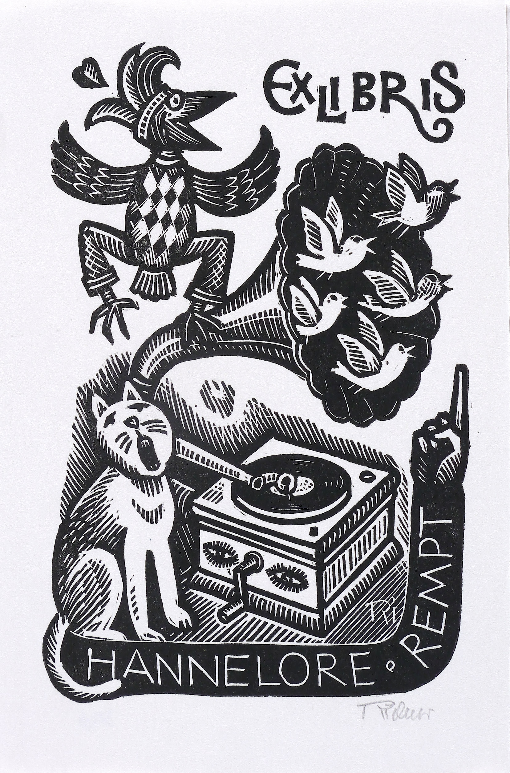 Richter, Willi. – „Exlibris Hannelore Rempt (Katze mit Grammophon)”.