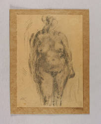1965-1970. Zeichnung / Kohlestift, auf gelb-orangem Velinkarton. – Originale Künstlergrafik, von Peter Kaiser. – Unikat. – 20,5 x 14,6 cm (Darstellung / Blatt), 24 x 18 cm (Trägerkarton).