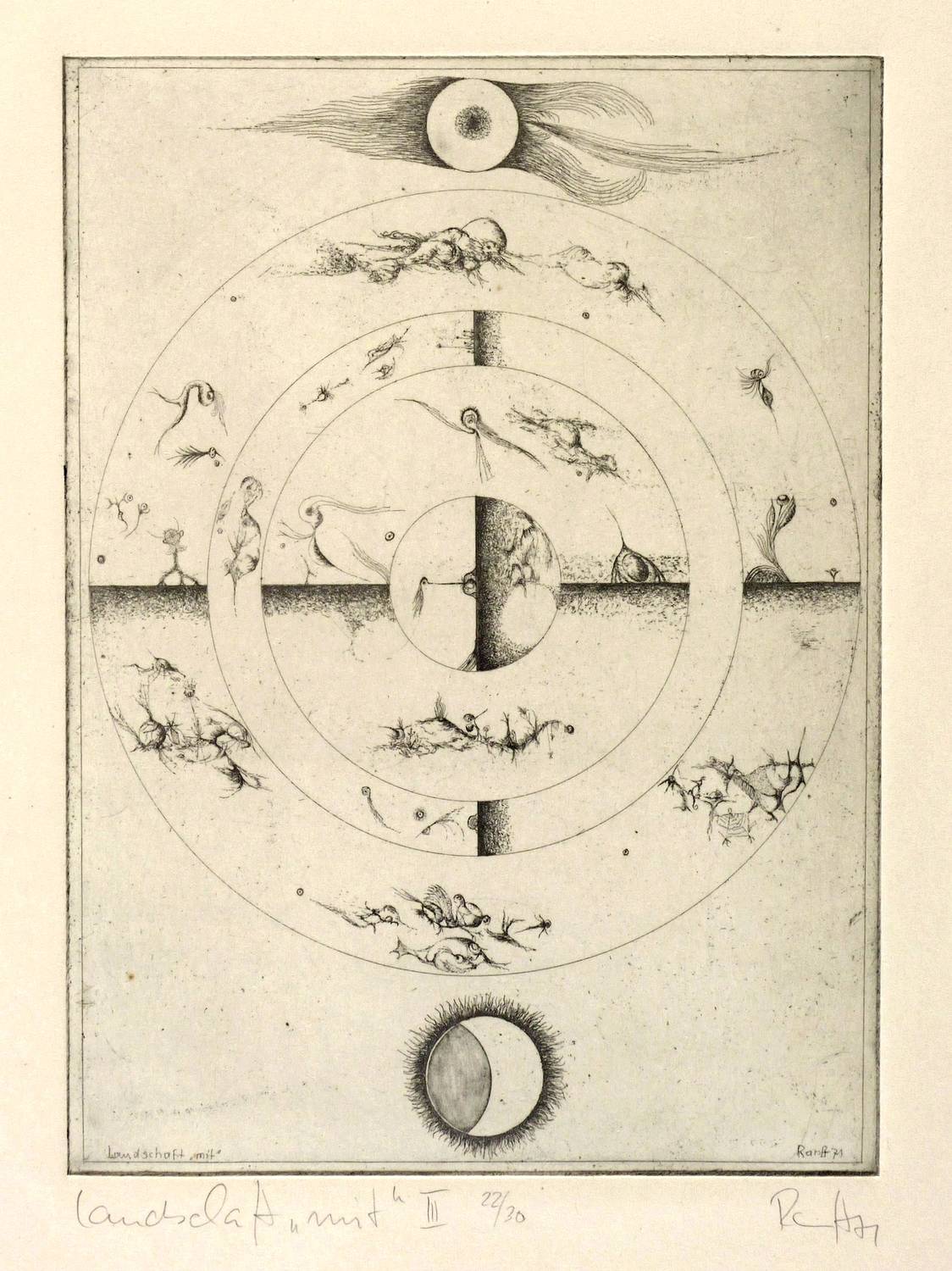 Rechts unten in Bleistift signiert und datiert: ″Ranft 71″. Links bezeichnet: ″Landschaft 'mit'″. Daneben Auflagenbezeichnung: ″III 22/30″. – Sehr guter Zustand.