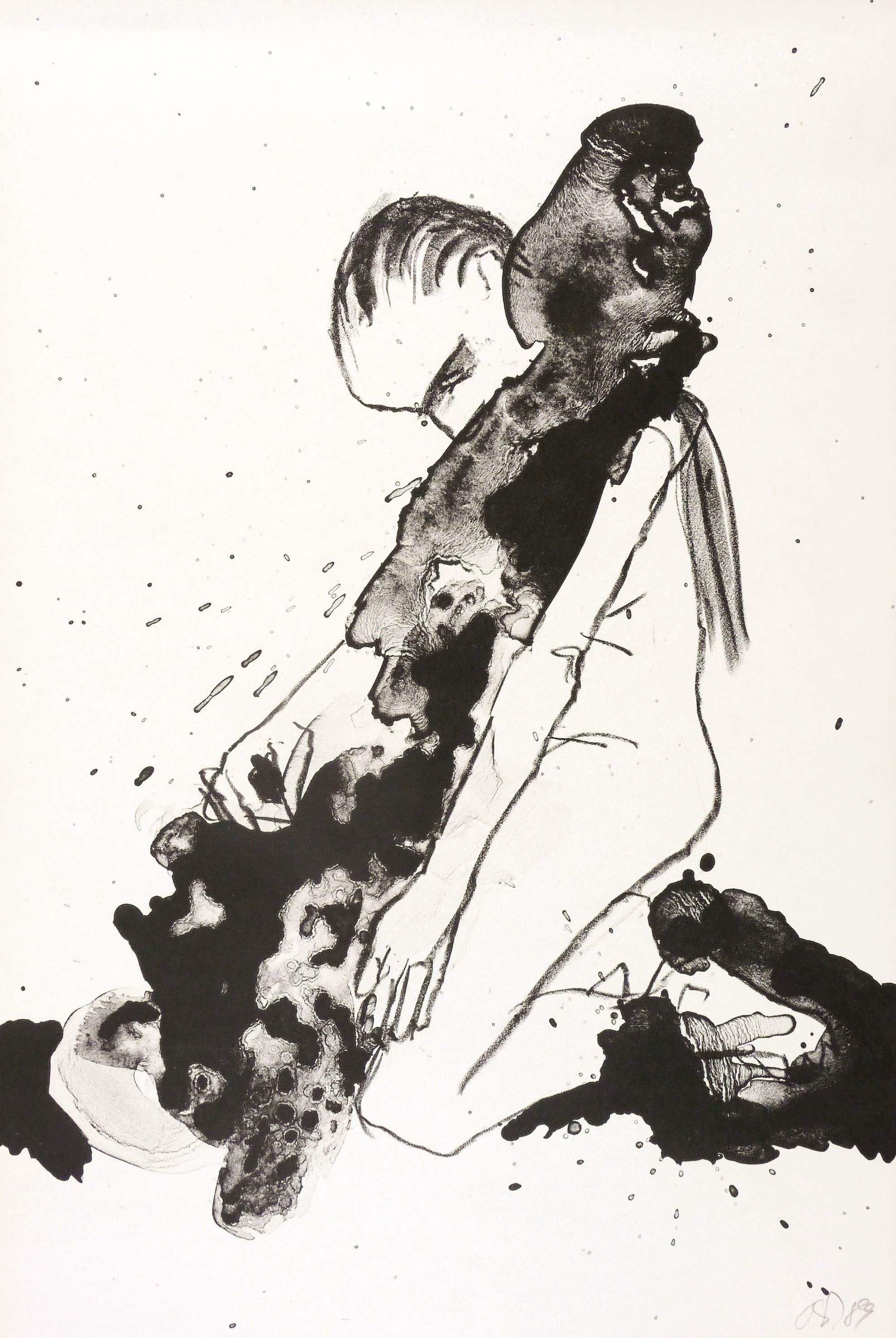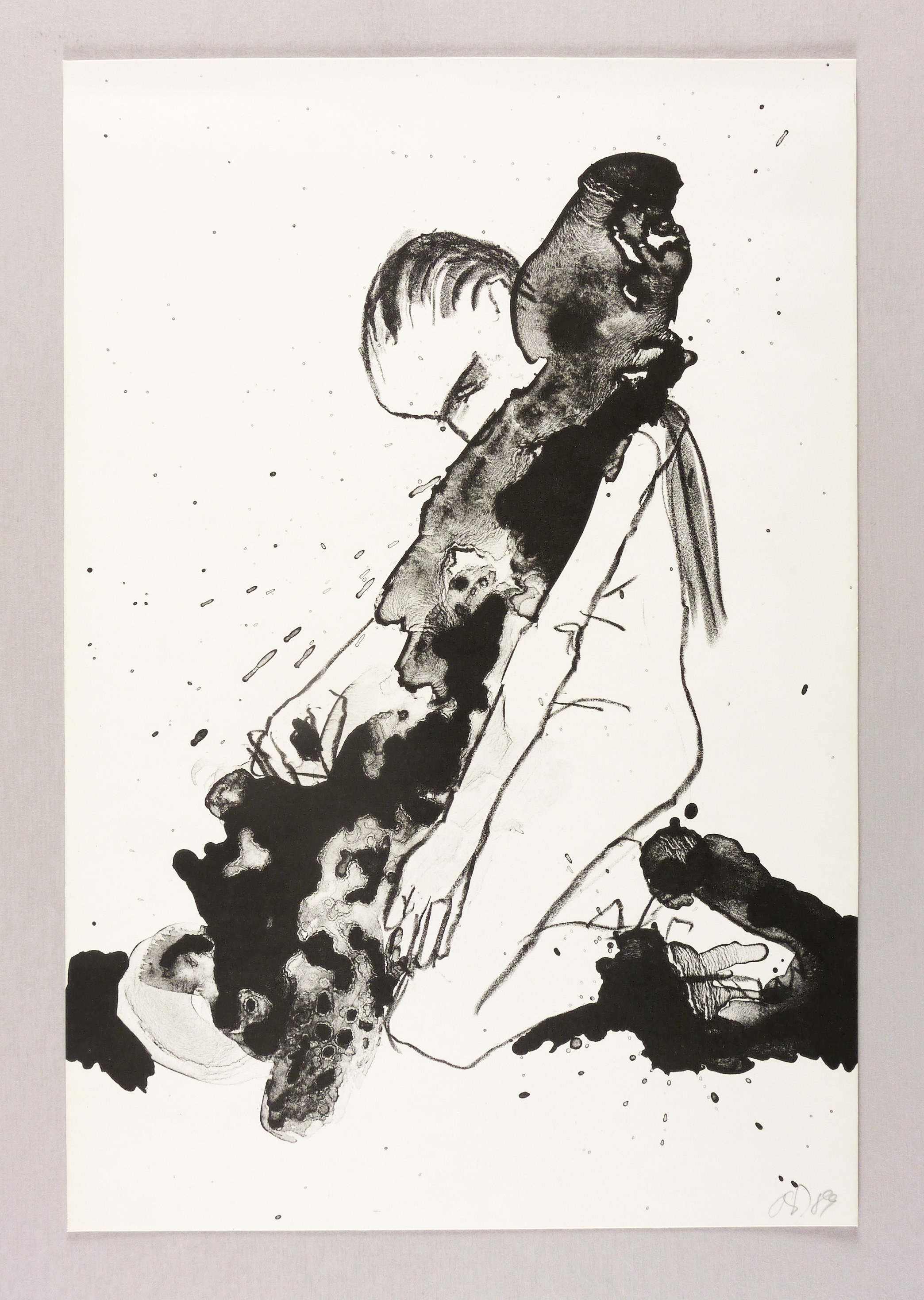 1989. Algrafie / Pinsel- & Federalgrafie, in Schwarz, auf glattem weißem Velin. – Originale Künstlergrafik, von Gudrun Trendafilov. – 44,5 x 30,2 cm (Darstellung / Blatt).