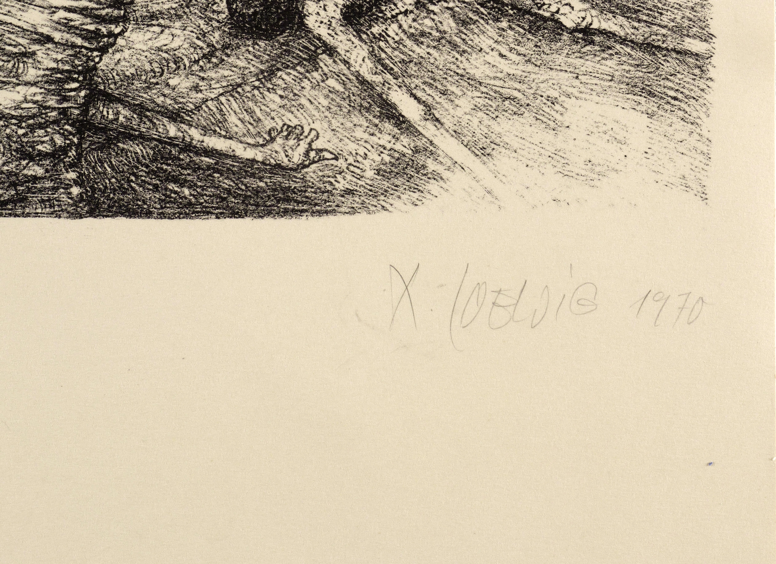 1970. Lithografie / Kreidelithografie, in Schwarz, auf festem chamois Velinkarton. – Originale Künstlergrafik, von Roger Loewig. – Auflage 50 Exemplare. – 26,1 x 27,7 cm (Darstellung / Druckbild), 43 x 32 cm (Blatt).