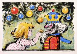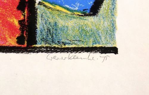 1975. Farblithografie / Kreidelithografie, in 5 Farben, auf glattem hellchamois Velinkarton. – Originale Künstlergrafik, von Werner Klemke. – Auflage Exemplar Nr. 12/180. – 31,3 x 46,5 cm (Darstellung / Druckbild), 43 x 59 cm (Blatt).