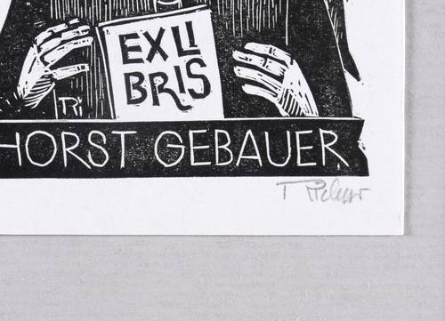 Rechts unten in Bleistift signiert: ″Richter″. Im Druckstock geschnittene Inschrift und Signatur: ″EXLIBRIS HORST GEBAUER // Ri″. – Ohne Mängel. Sehr guter Zustand.