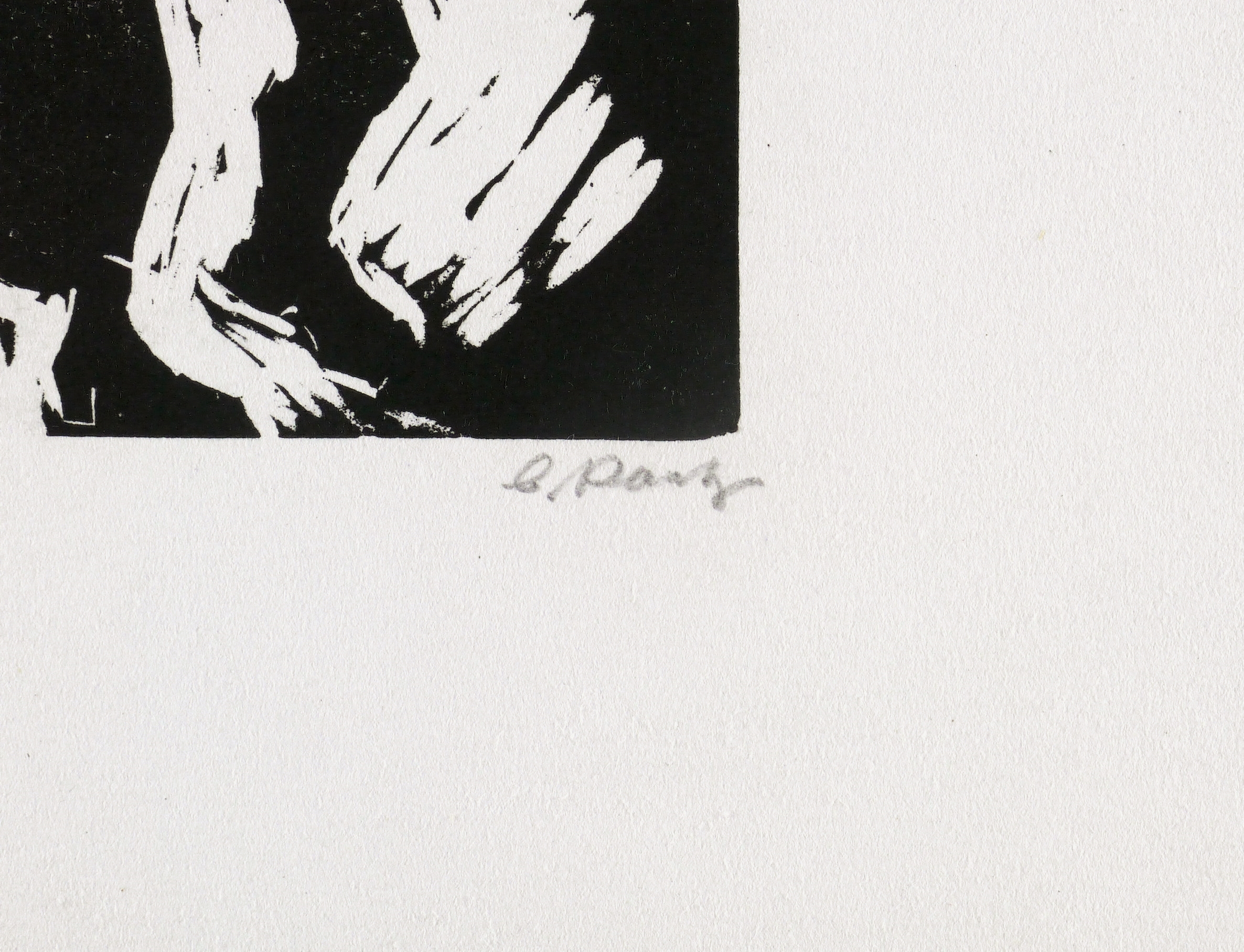 1929-1932. Holzschnitt, in Schwarz, auf weißlichem Velin. – Originale Künstlergrafik, von Charlotte Elfriede Pauly. – 11,5 x 13,8 cm (Darstellung / Druckbild), 22 x 30 cm (Blatt).