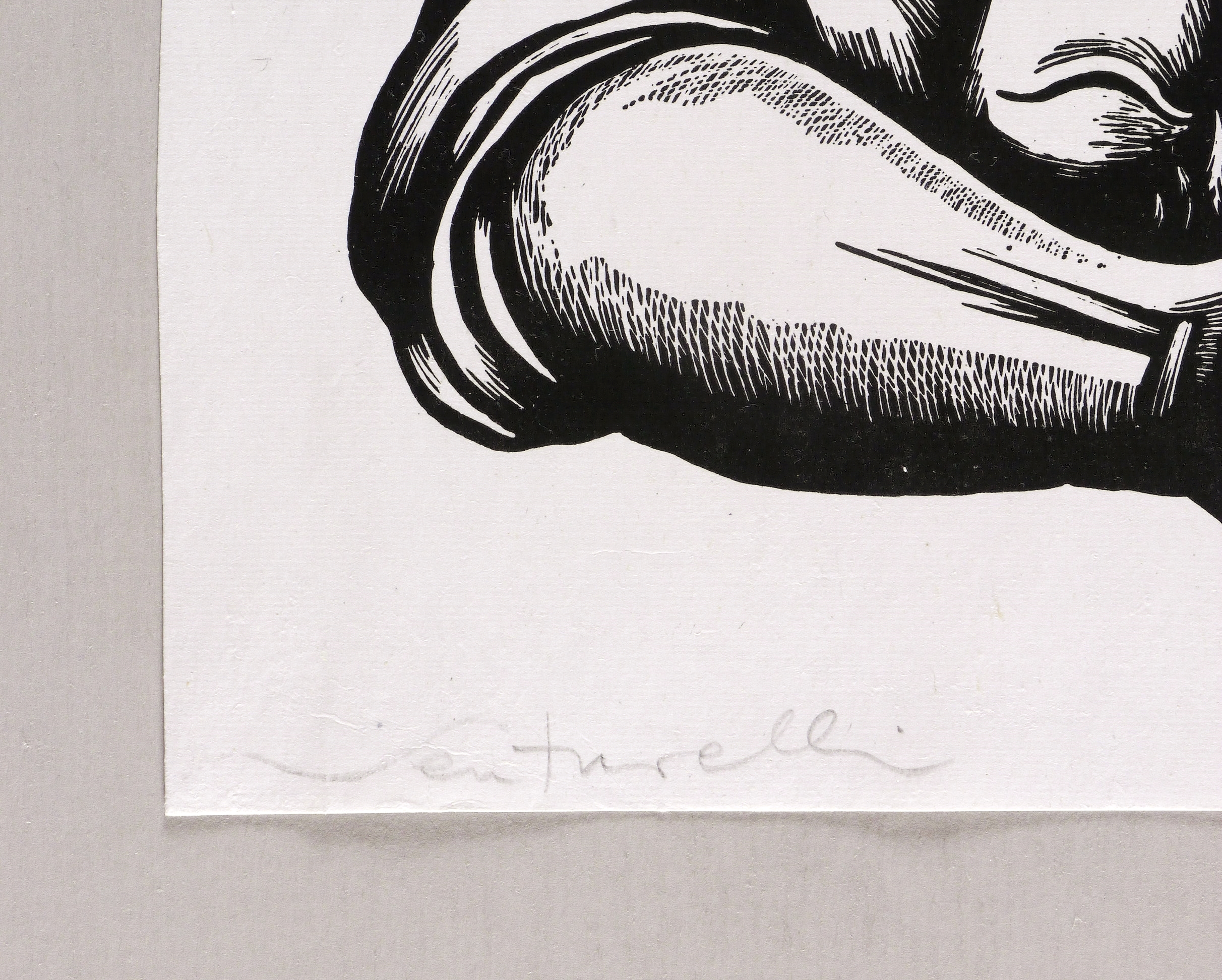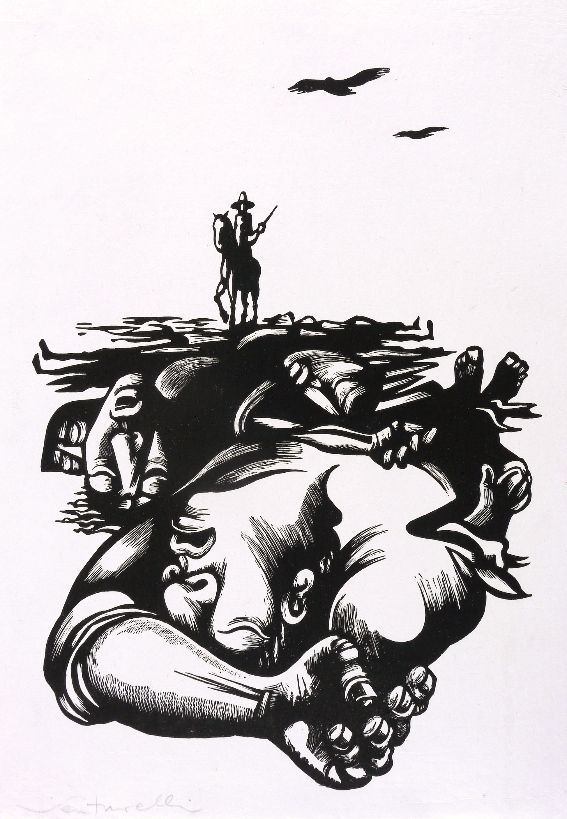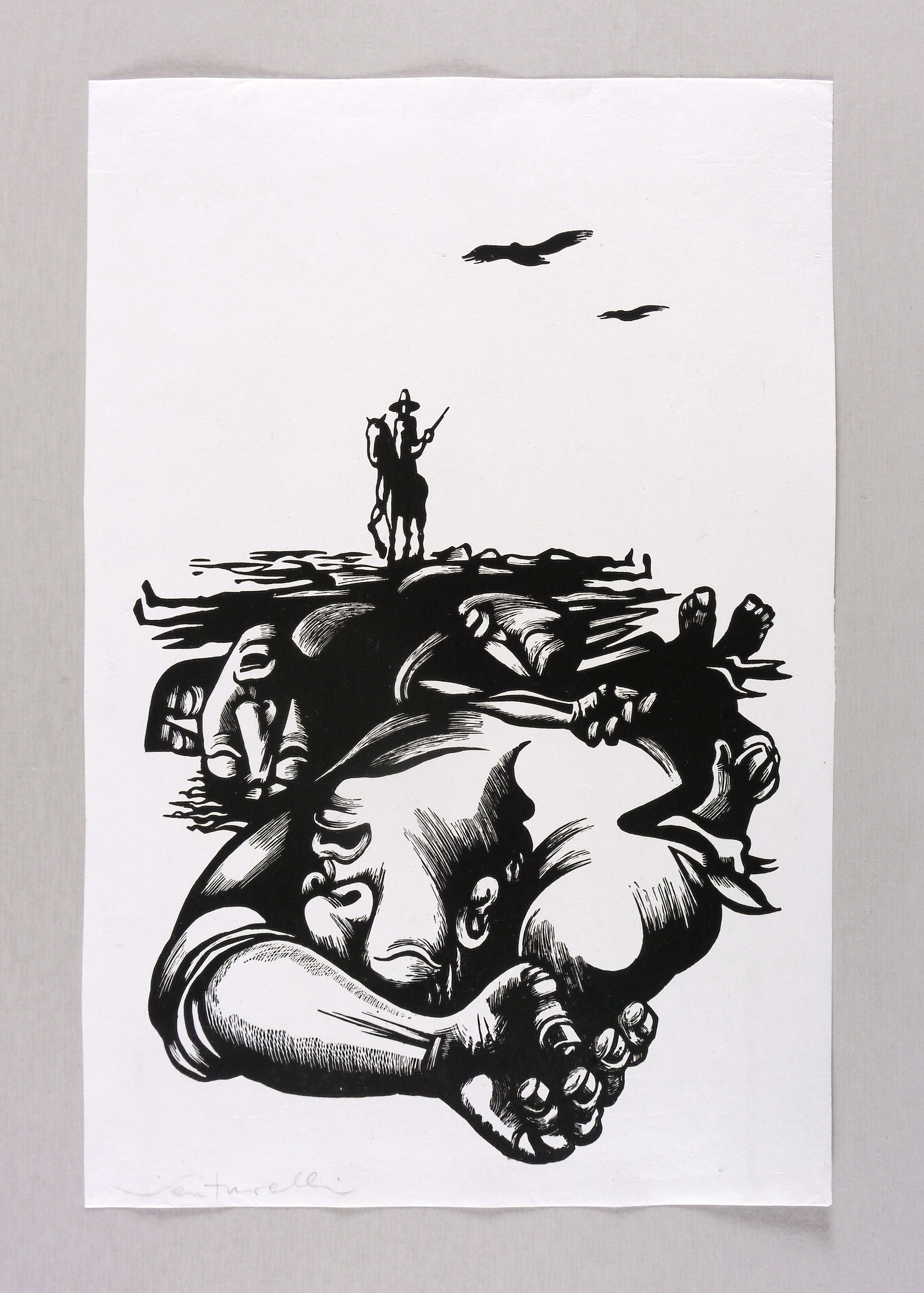 Links unten in Bleistift signiert: ″Venturelli″. – Der Holzschnitt steht sowohl stilistisch als auch inhaltlich im Zusammenhang mit den Illustrationen zu ″Patria negra y roja″ (José Venturelli, Genf: Librairie Rousseau 1975). – Provenienz: Sammlung Erhard Frommhold, Dresden. – Sehr guter Zustand.