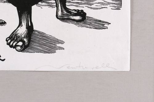 Rechts unten in Bleistift signiert: ″Venturelli″. – Der Holzschnitt steht sowohl stilistisch als auch inhaltlich im Zusammenhang mit den Illustrationen zu ″Patria negra y roja″ (José Venturelli, Genf: Librairie Rousseau 1975). – Provenienz: Sammlung Erhard Frommhold, Dresden. – Sehr guter Zustand.