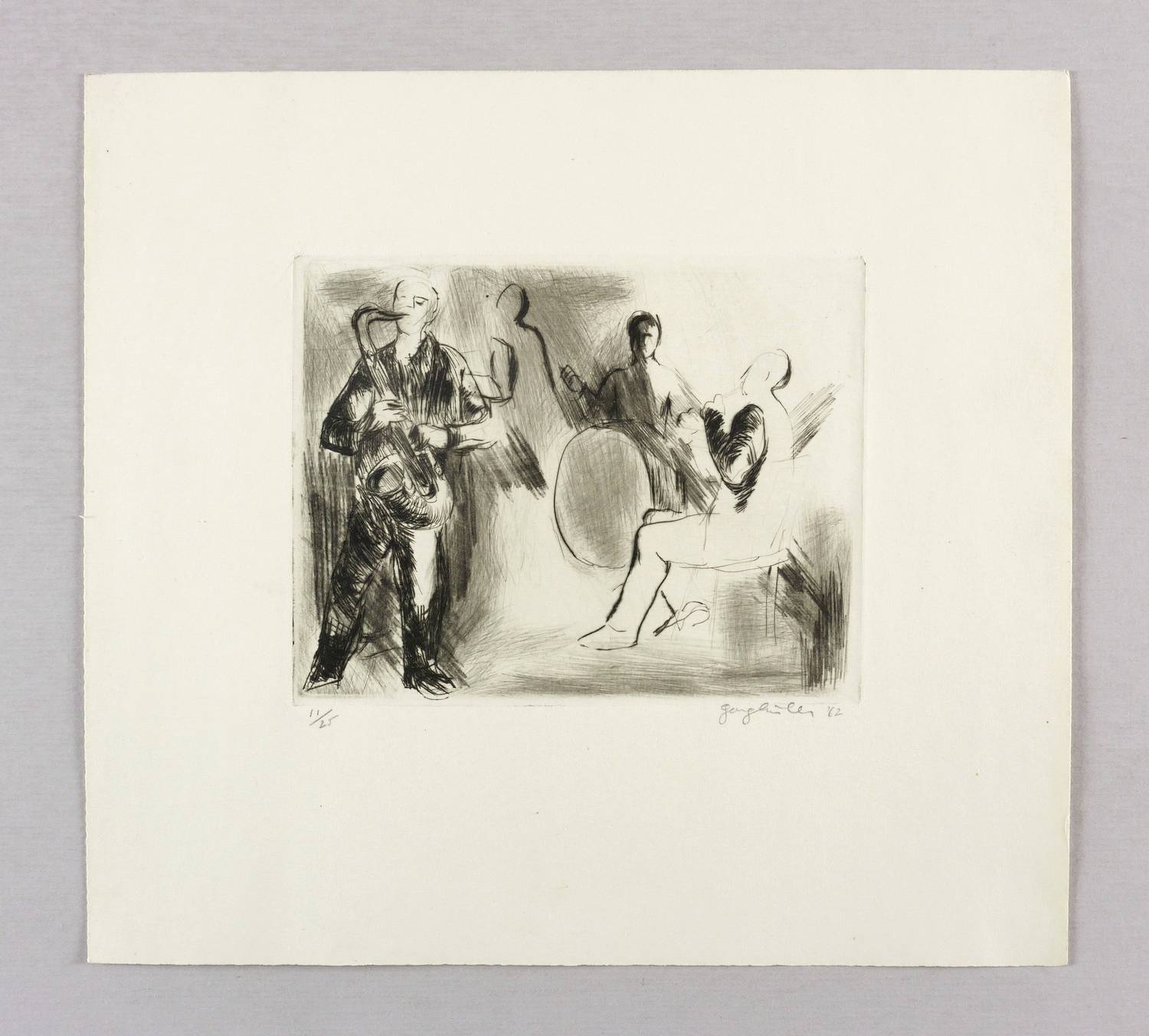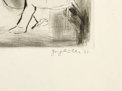 1962. Radierung / Kaltnadel, in Schwarz, auf hellchamois Velinkarton. – Originale Künstlergrafik, von Georg Eisler. – Auflage Exemplar Nr. 11/25. – 13,7 x 17,6 cm (Darstellung / Platte), 28 x 31 cm (Blatt).