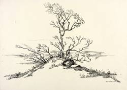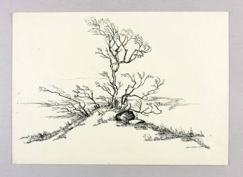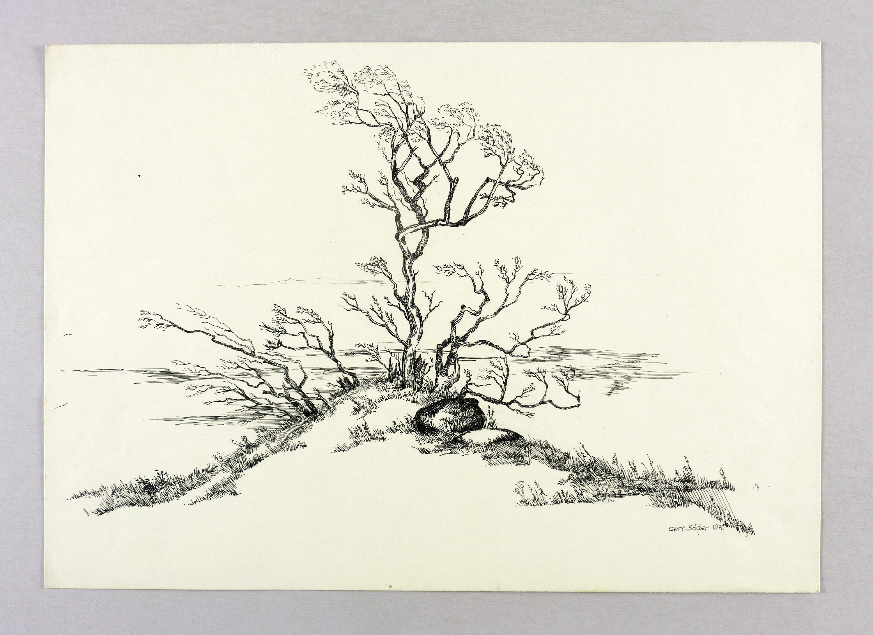 1970. Zeichnung / Federzeichnung, in schwarzer Tusche, auf chamois Velinkarton. – Originale Künstlergrafik, von Gert Söder. – Unikat. – 30,0 x 42,0 cm (Darstellung / Blatt).
