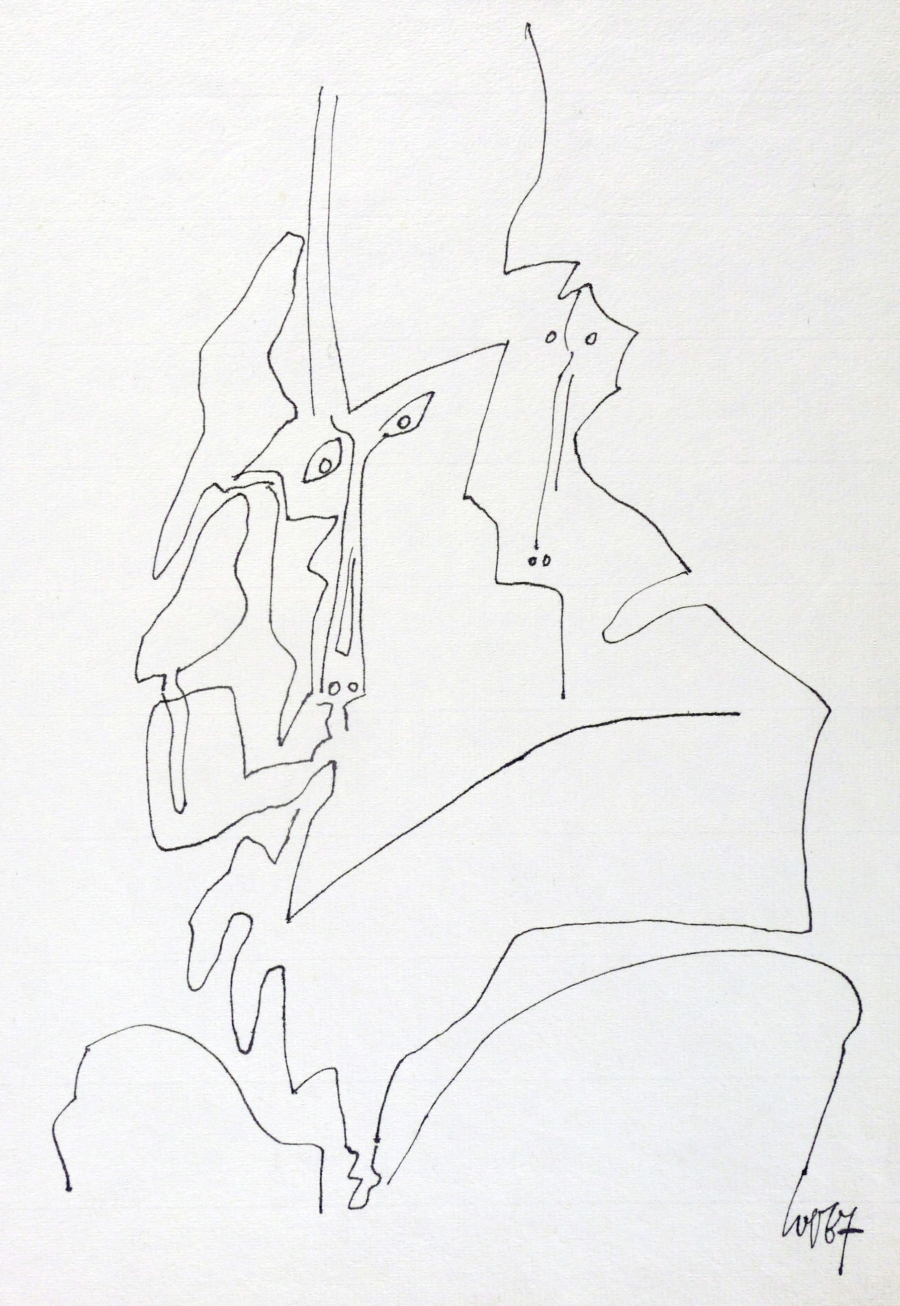1967. Zeichnung / Federzeichnung, in Schwarz, auf leichtem hellchamois Bütten. – Originale Künstlergrafik, von Ignacy Witz. – Unikat. – 31,4 x 23,3 cm (Darstellung / Blatt).