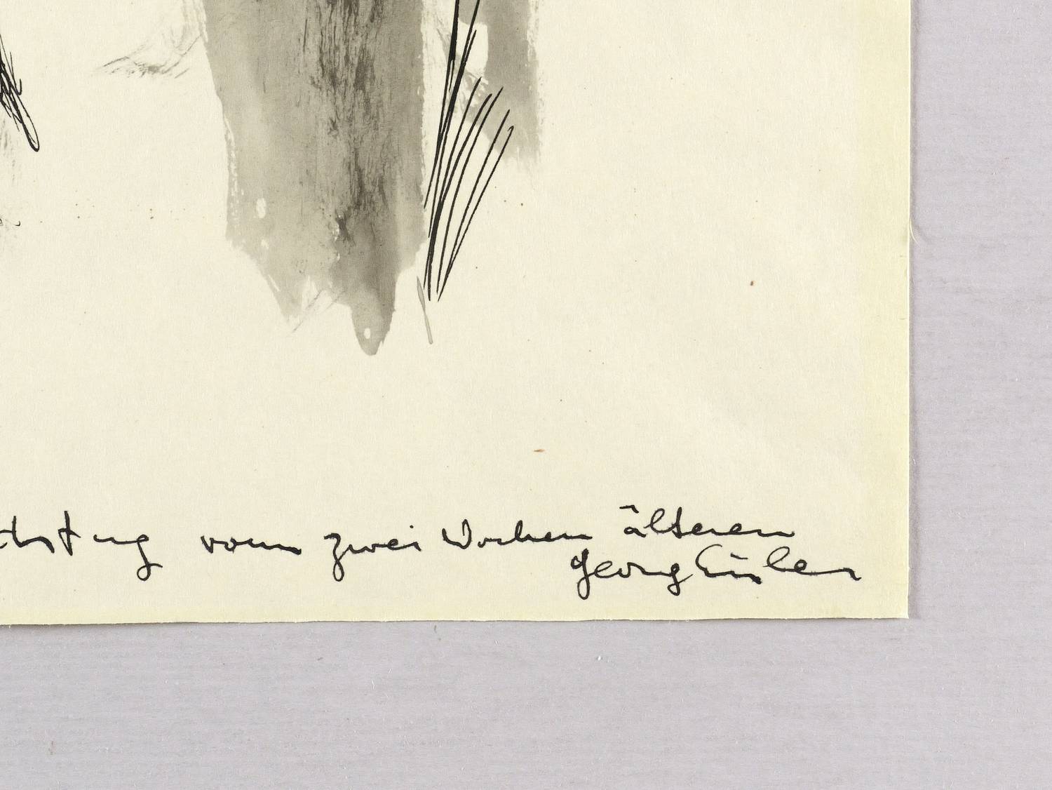 Rechts unten in schwarzer Feder signiert: ″Georg Eisler″. Links datiert: ″2. A. '62″. Dazu Widmung. – Sehr guter Zustand.