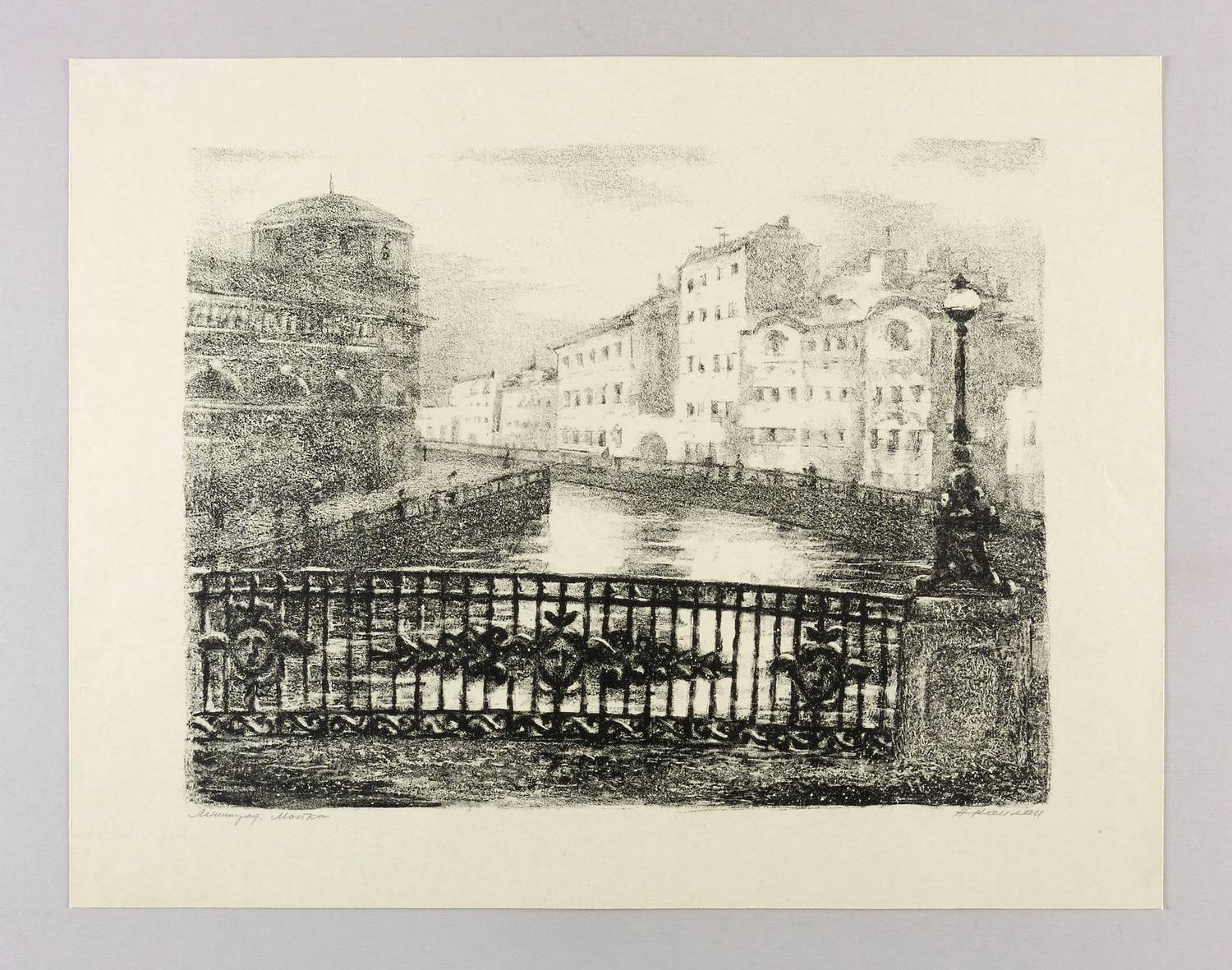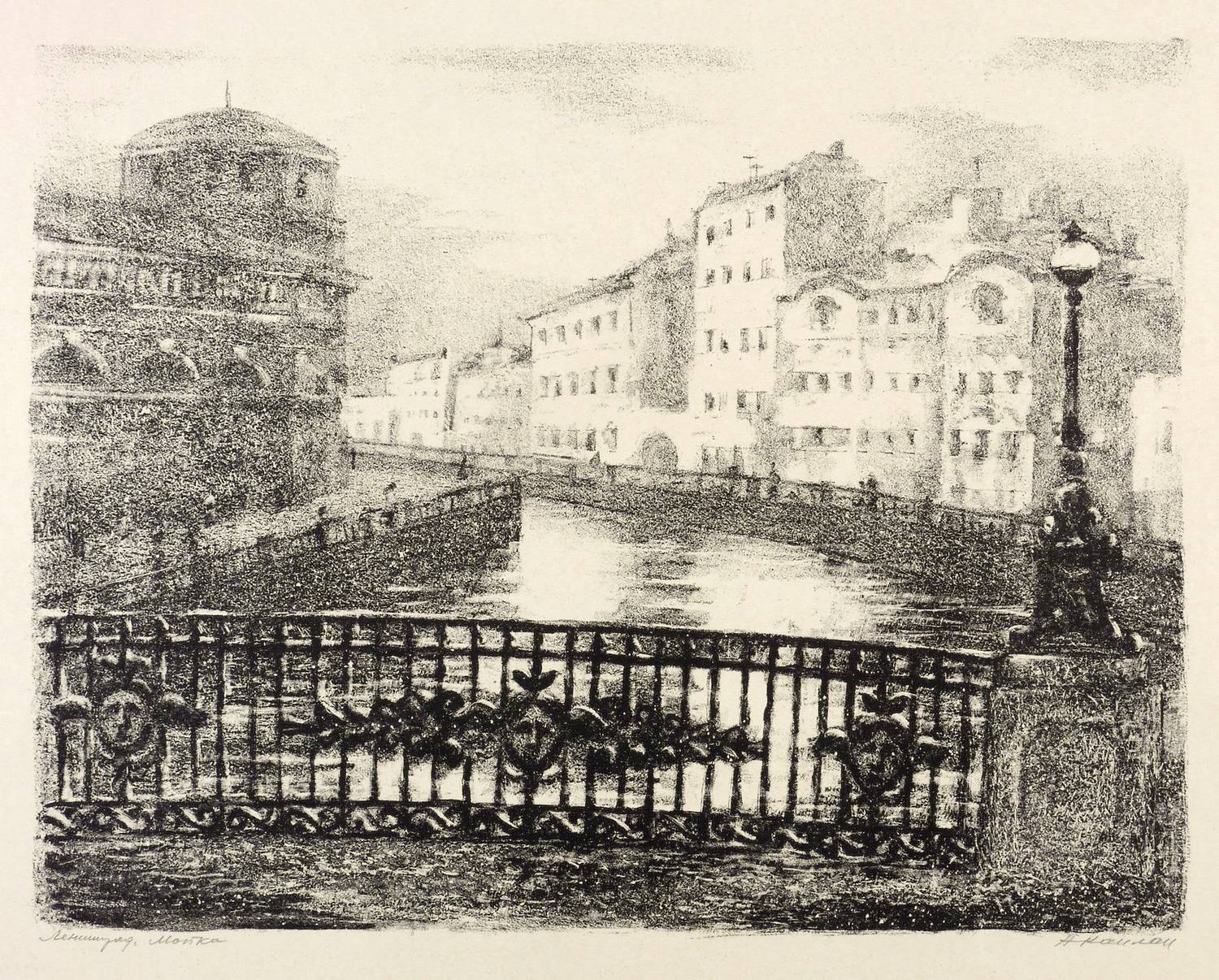 Mayer-Strodt II 60. – Rechts unten in Bleistift signiert: ″АКаплан″. Links vom Künstler kyrillisch bezeichnet: ″Ленинград. Мойка″. – Provenienz: Sammlung Erhard Frommhold, Dresden. – Sehr guter Zustand.