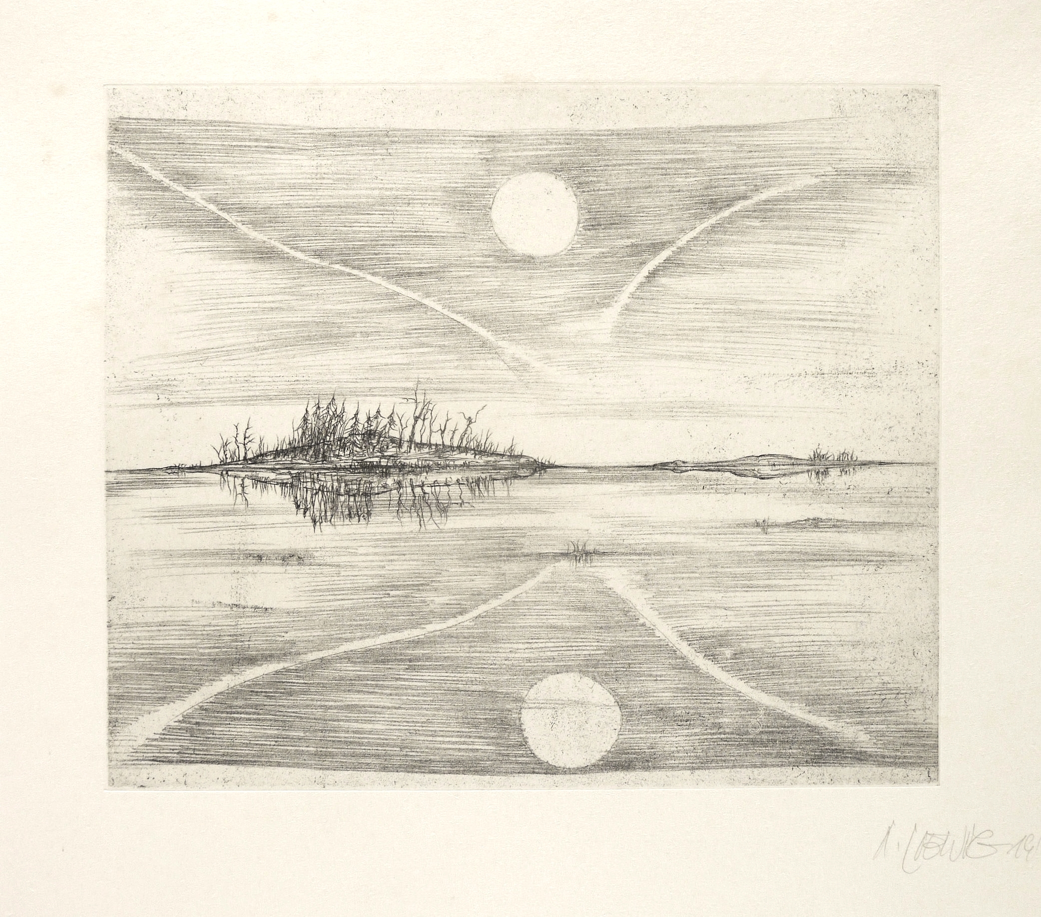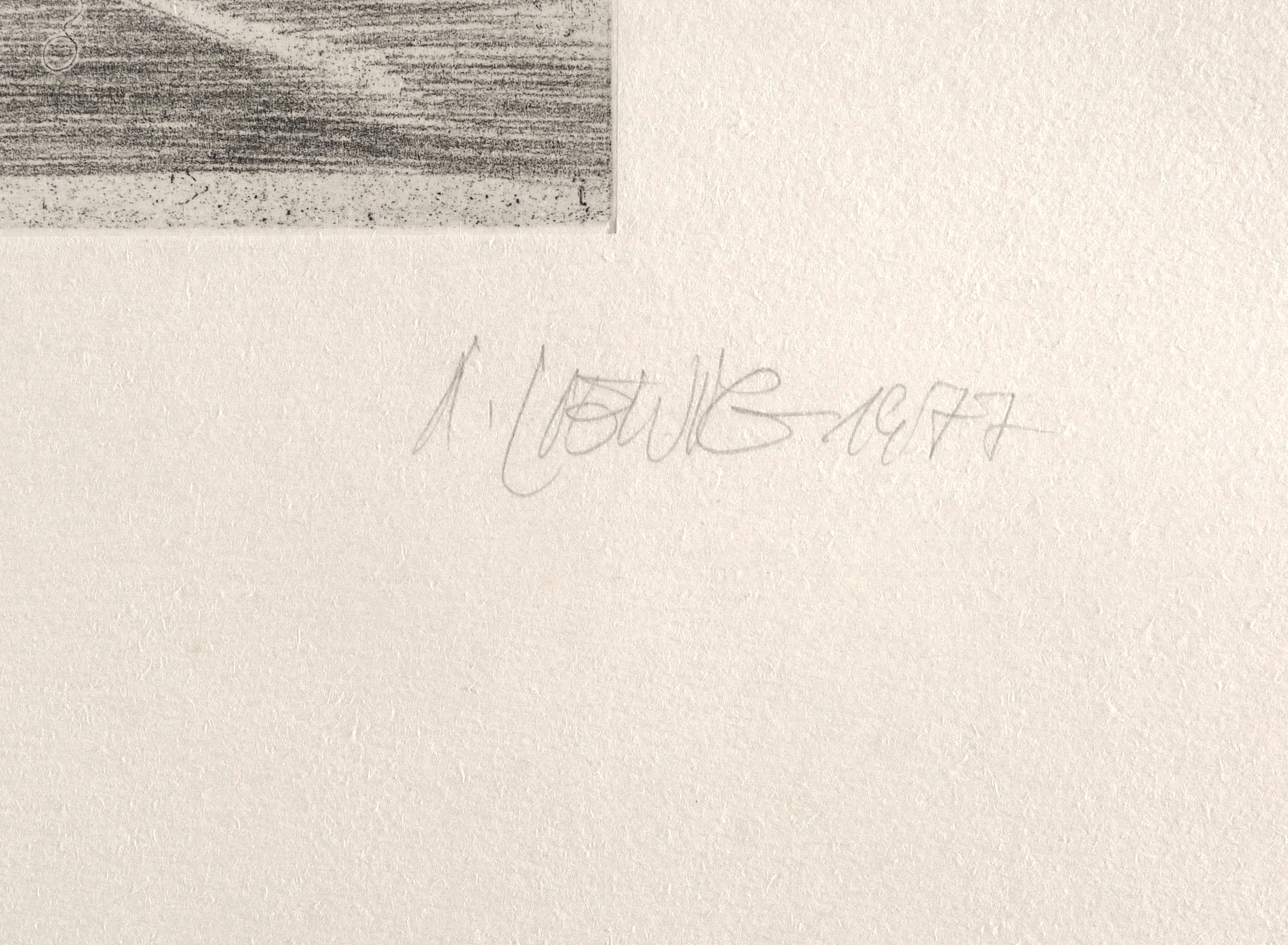 1977. Radierung / Vernis mou & Aquatinta, in Schwarz, auf feinem hellchamois Hahnemühle. – Originale Künstlergrafik, von Roger Loewig. – Auflage Exemplar Nr. 6/25. – 21,0 x 25,0 cm (Darstellung / Platte), 54 x 40 cm (Blatt).