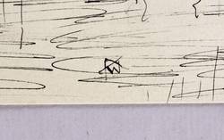 1945-1950. Zeichnung / Federzeichnung, in schwarzer Tusche, auf leichtem gelblichem Velin. – Originale Künstlergrafik, von Alexander Wolfgang. – Unikat. – 14,3 x 18,8 cm (Darstellung / Blatt).