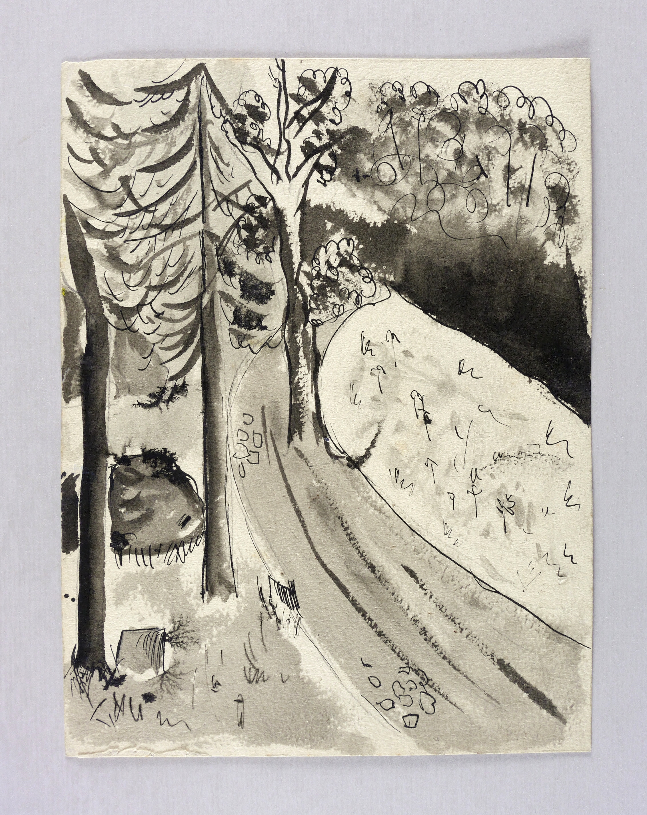 1925-1935. Zeichnung / Pinsel- & Federzeichnung, in schwarzer Tusche, auf rauem gelbem Aquarellkarton. – Originale Künstlergrafik, von Alexander Wolfgang. – Unikat. – 23,8 x 18,1 cm (Darstellung / Blatt).