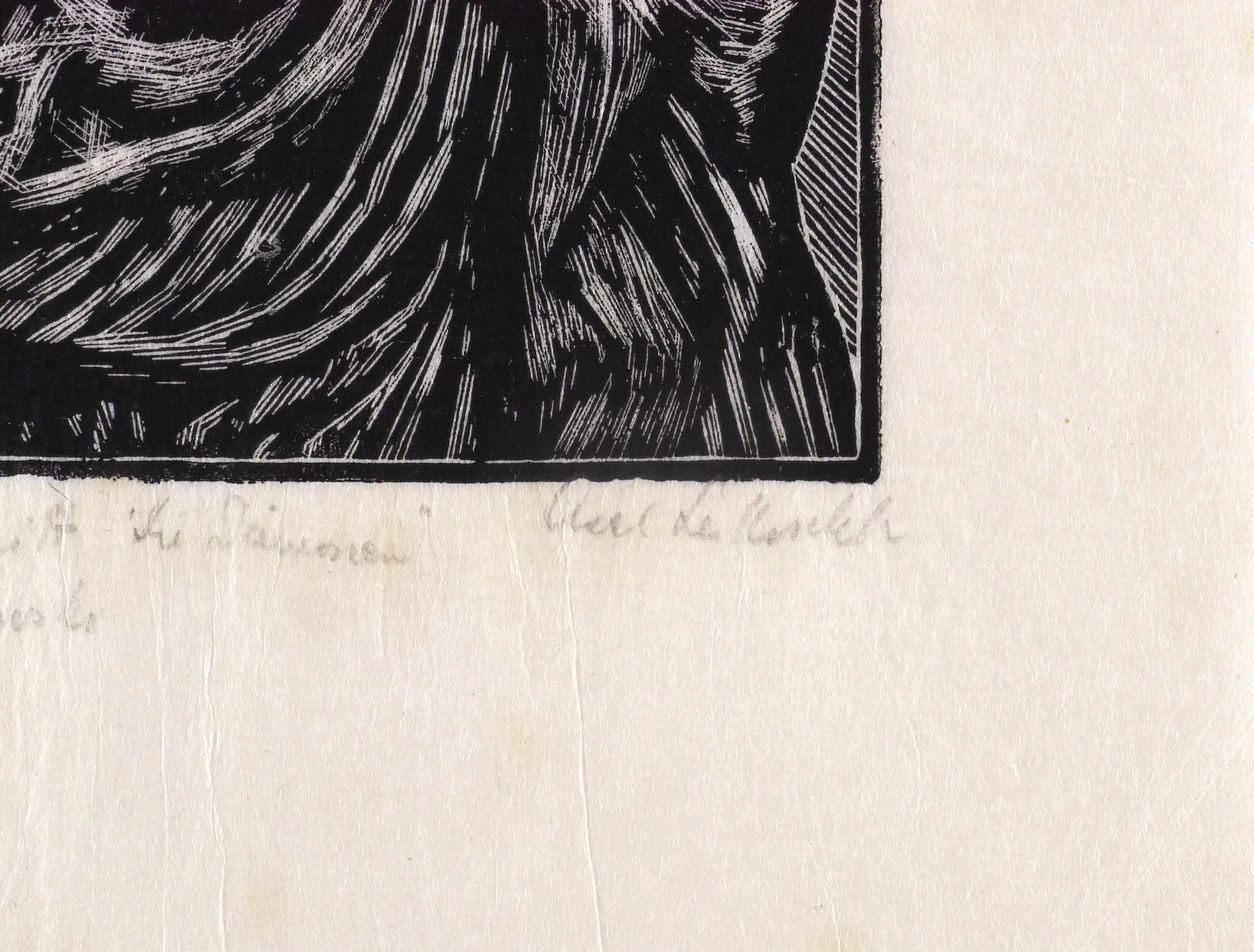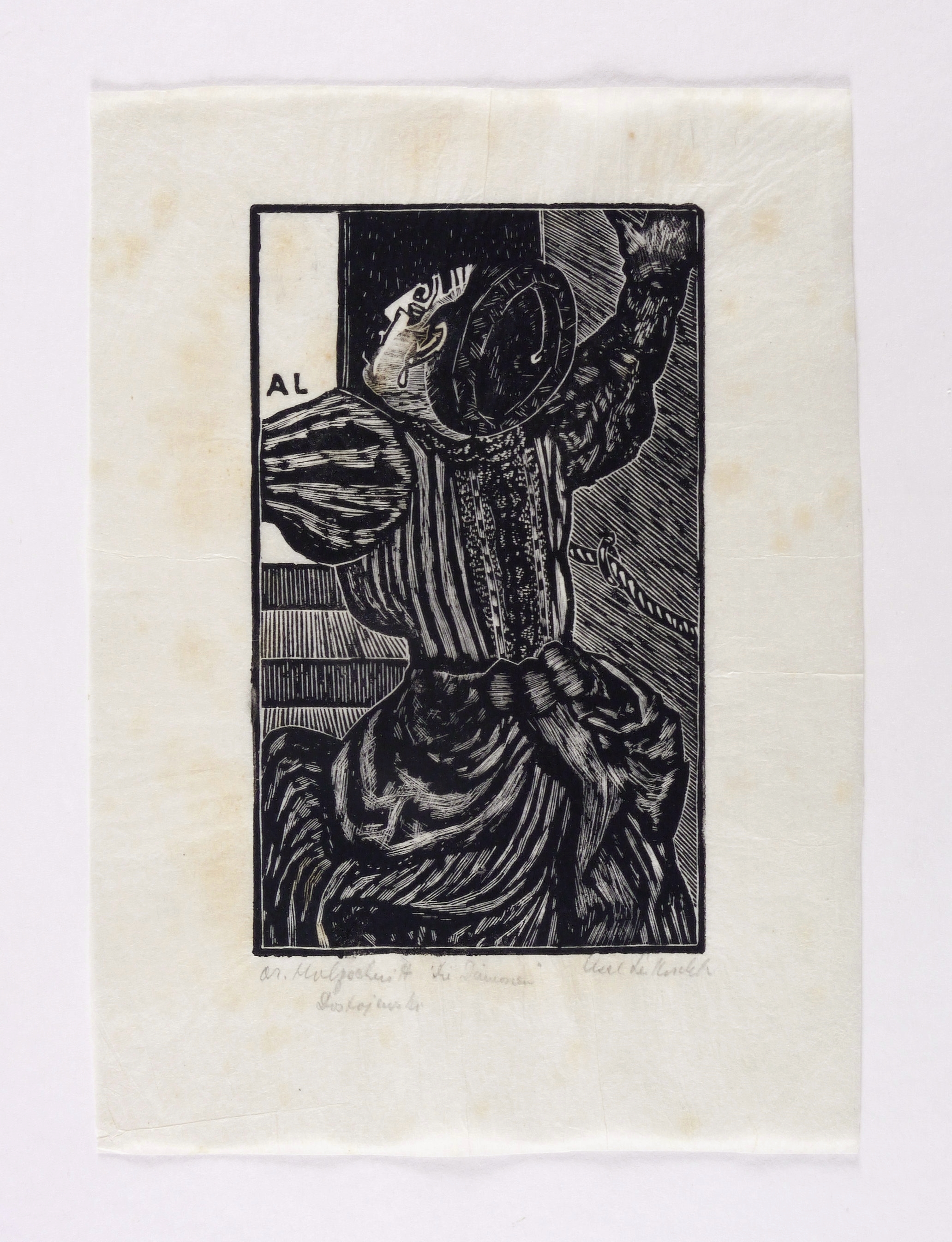1941-1948. Holzschnitt, in Schwarz, auf feinstem chamois Japan. – Originale Künstlergrafik, von Axl Leskoschek. – 16,4 x 9,9 cm (Darstellung / Druckstock), 24 x 17 cm (Blatt).