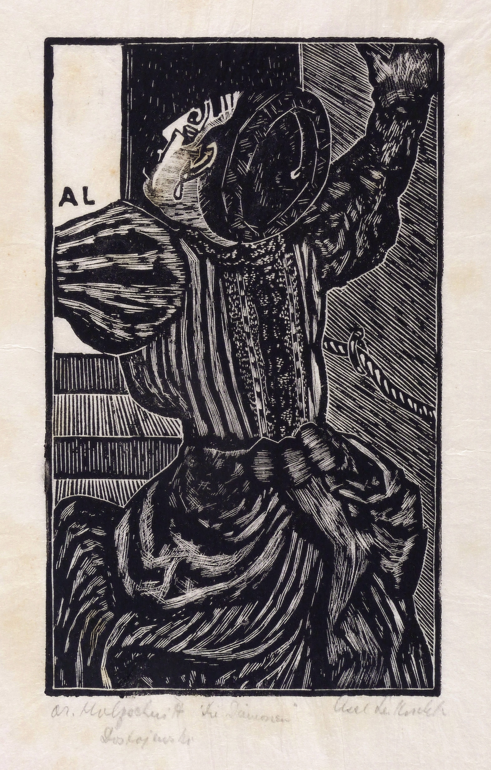 Rechts unten in Bleistift signiert: ″Axl Leskoschek″. Links weiter bezeichnet: ″Or. Holzschnitt / Die Dämonen / Dostojewski″. Im Druckstock links oben Monogramm: ″AL″. – Provenienz: Sammlung Erhard Frommhold, Dresden. Frommhold war langjähriger Lektor, Cheflektor und Verlagsleiter des Verlag der Kunst in Dresden. Hier erschien 1961 das Buch ″Der Illustrator Axl Leskoschek″ (Dresden: Verlag der Kunst 1961) mit einer Einführung von Ina Jun-Broda. – Sehr guter Zustand.