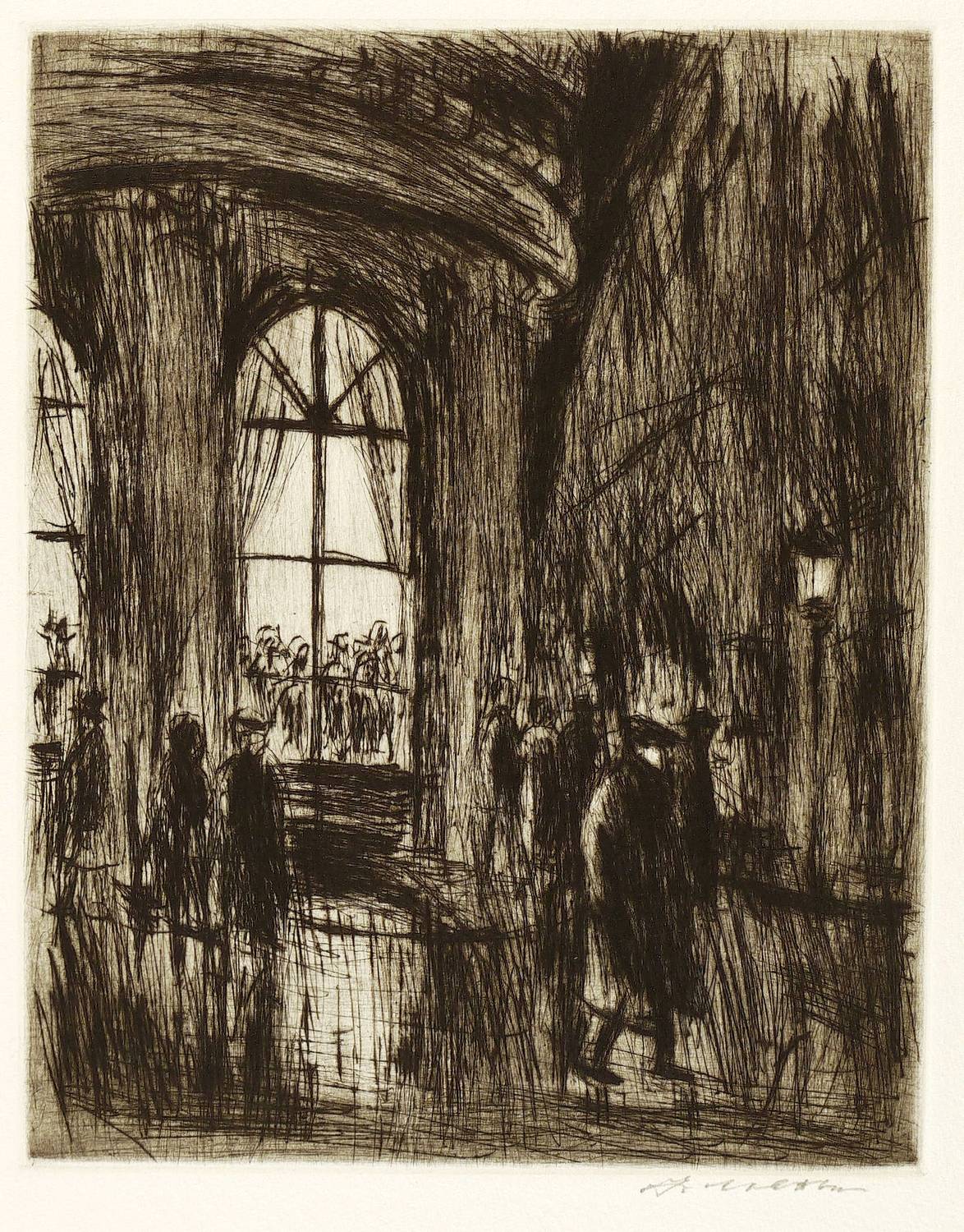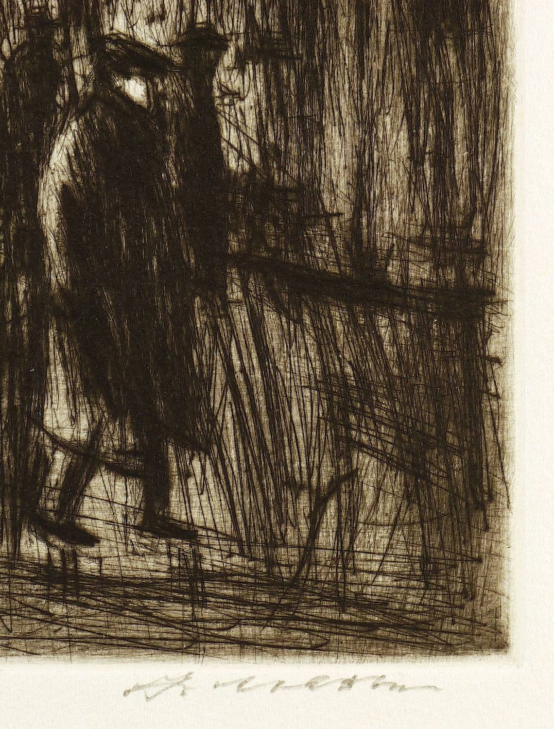 1983. Radierung / Kaltnadel, mit Plattenton, in Schwarz, auf hellchamois Büttenkarton. – Originale Künstlergrafik, von Arno Mohr. – 24,7 x 19,5 cm (Darstellung / Platte), 39,5 x 31 cm (Blatt).