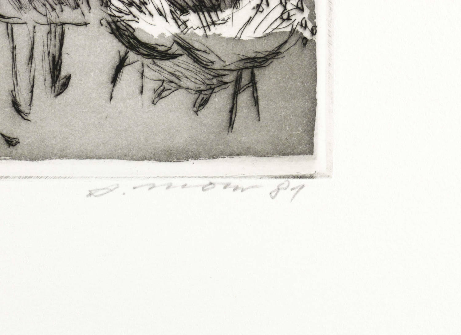1981. Radierung / Kaltnadel & Aquatinta, mit Plattenton, in Schwarz, auf hellchamois Velinkarton. – Originale Künstlergrafik, von Arno Mohr. – Auflage Exemplar Nr. 24/30. – 24,9 x 16,7 cm (Darstellung / Platte), 48 x 34 cm (Blatt).
