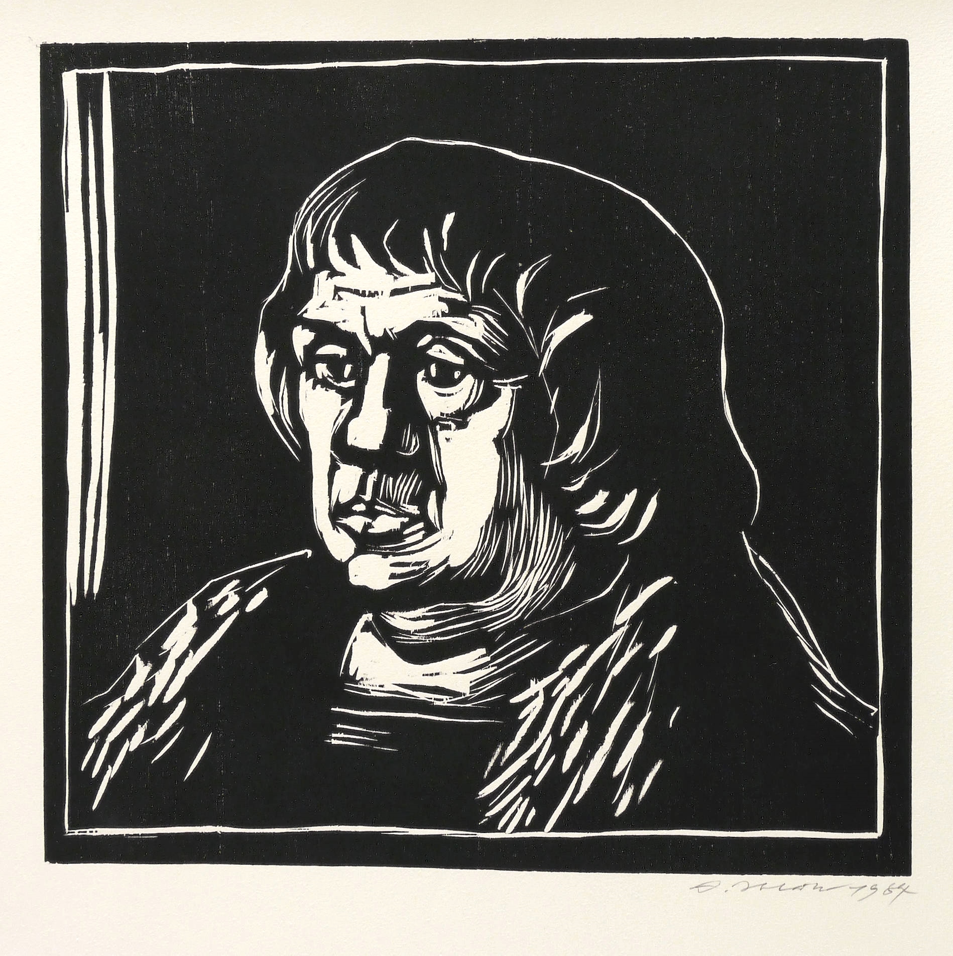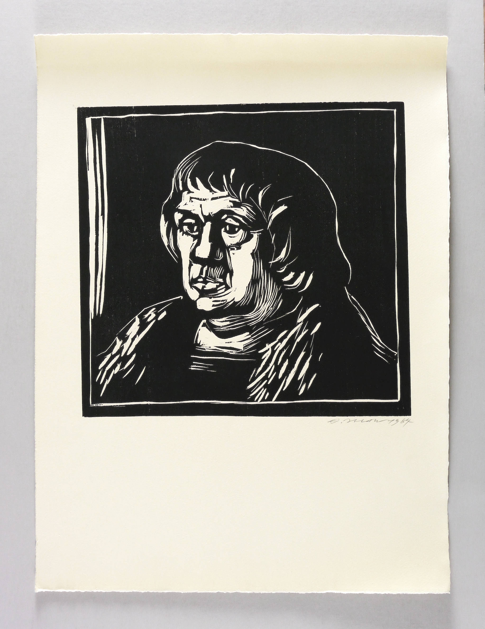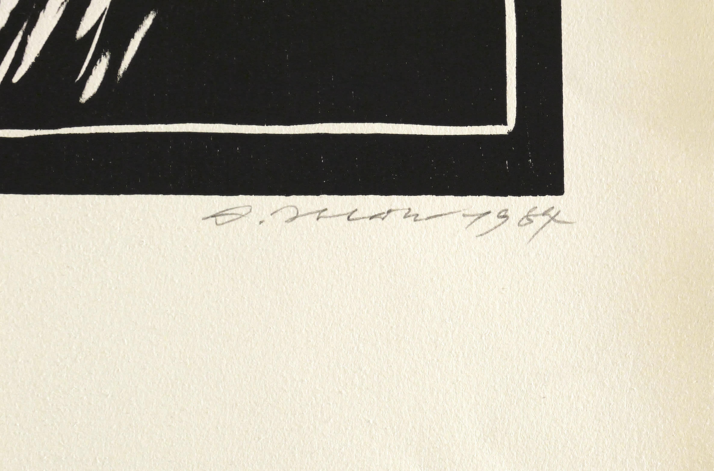 1984. Holzschnitt, in Schwarz, auf chamois Bütten. – Originale Künstlergrafik, von Arno Mohr. – 34,4 x 35,9 cm (Darstellung / Druckstock), 61 x 45 cm (Blatt).