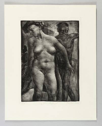 Wolfgang Peuker (1945 Aussig - 2001 Groß Glienicke). Deutscher Maler und Grafiker der Leipziger Schule. 1963-65 Ausbildung zum Offsetdrucker. 1965-70 Studium an der Hochschule für Grafik und Buchkunst Leipzig (HGB) bei Werner Tübke, Bernhard Heisig und Wolfgang Mattheuer. Danach freischaffend in Leipzig und Zwickau. 1975 Käthe-Kollwitz-Preis. 1977-89 Lehrtätigkeit an der Hochschule für Grafik und Buchkunst in Leipzig. 1983 Kunstpreis der Stadt Leipzig. 1984 Teilnahme an der Biennale in Venedig, Kunstpreis der DDR. 1990 Berufung an die Kunsthochschule Berlin-Weißensee, 1993 Professur ebenda.