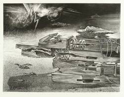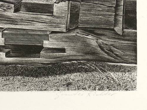 Günter Richter (*1933 Meißen, lebt und arbeitet in Leipzig). Deutscher Maler und Grafiker. 1949-53 Ausbildung zum Bossierer in der Staatlichen Porzellanmanufaktur in Meißen. 1953-58 Studium an der Hochschule für Grafik und Buchkunst in Leipzig (HGB). 1972 Mitbegründer der Leipziger Grafikbörse, 1976-82 Leitung. 1989-92 Lehrer im Jugendstudio des Lindenau-Museums Altenburg. Seit 1990 Dozent an der HGB Leipzig. Ob in Form von zerfallenen Hausfassaden, welkenden Blumen oder Strandgut, Zeit und Verfall ist zentrales Thema fast seines gesamten Werks, das eine surreal verfremdete Romantik kennzeichnet.