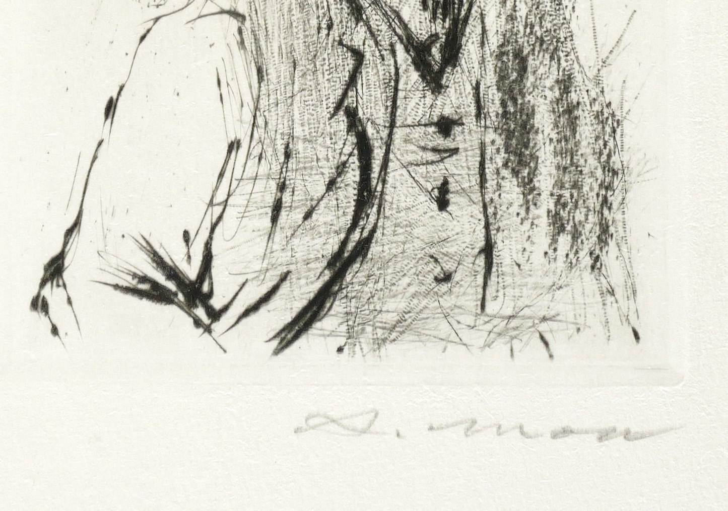 1960-1970. Radierung / Kaltnadel & Roulette, in Schwarz, auf weichem hellchamois Velin. – Originale Künstlergrafik, von Arno Mohr. – 14,0 x 9,8 cm (Darstellung / Platte), 24 x 17 cm (Blatt).