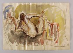 1978. Aquarell, über schwarzer Kreide, auf schwerem gelbem Büttenkarton. – Originale Künstlergrafik, von Horst Leifer. – Unikat. – 41,0 x 57,8 cm (Darstellung / Blatt).